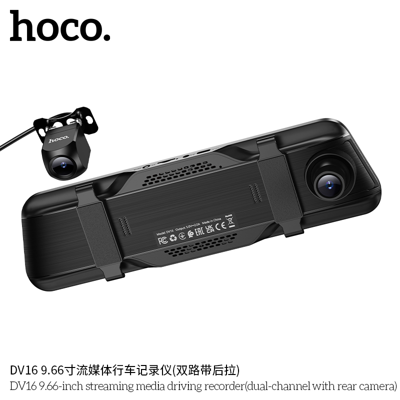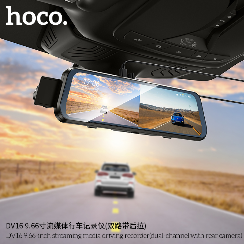 Видеорегистратор Hoco DV16 в формате зеркала заднего вида — современное многофункциональное устройство, объединяющее функции стандартного зеркала и двухканальной системы видеозаписи. Благодаря продуманной конструкции он органично вписывается в интерьер автомобиля: при выключенном экране выглядит как обычное зеркало, а при активации превращается в полноценный регистратор с передней и задней камерами.