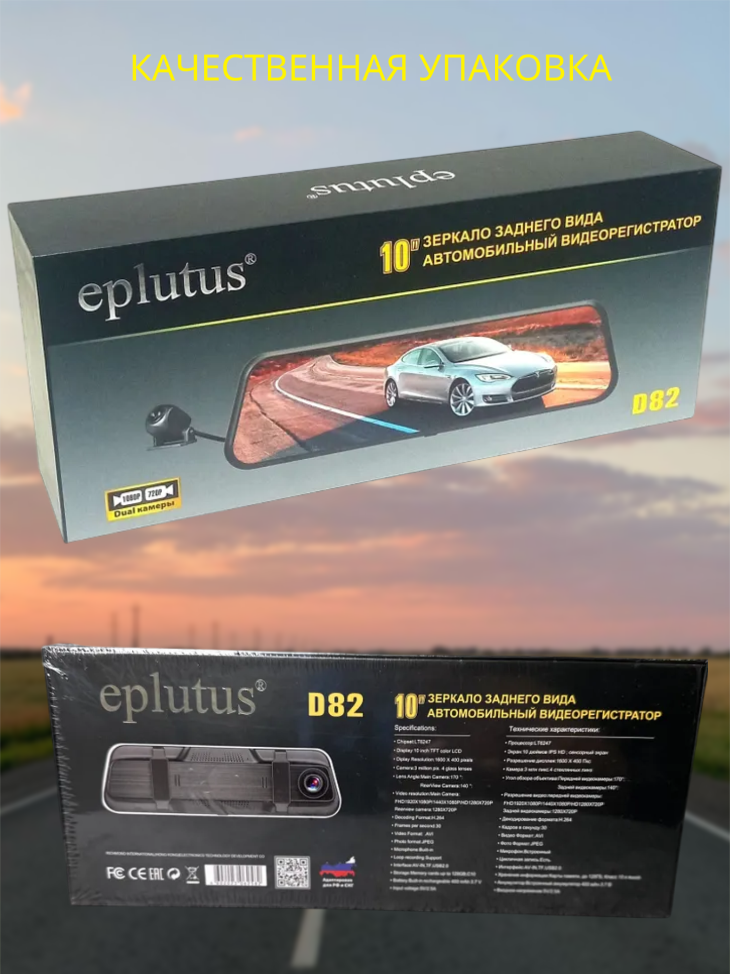 Eplutus D82 представляет собой современное устройство, объединяющее функции видеорегистратора и зеркала заднего вида. Модель оснащена двумя камерами и 10-дюймовым сенсорным дисплеем, что обеспечивает высокое качество видеозаписи и комфортное использование.