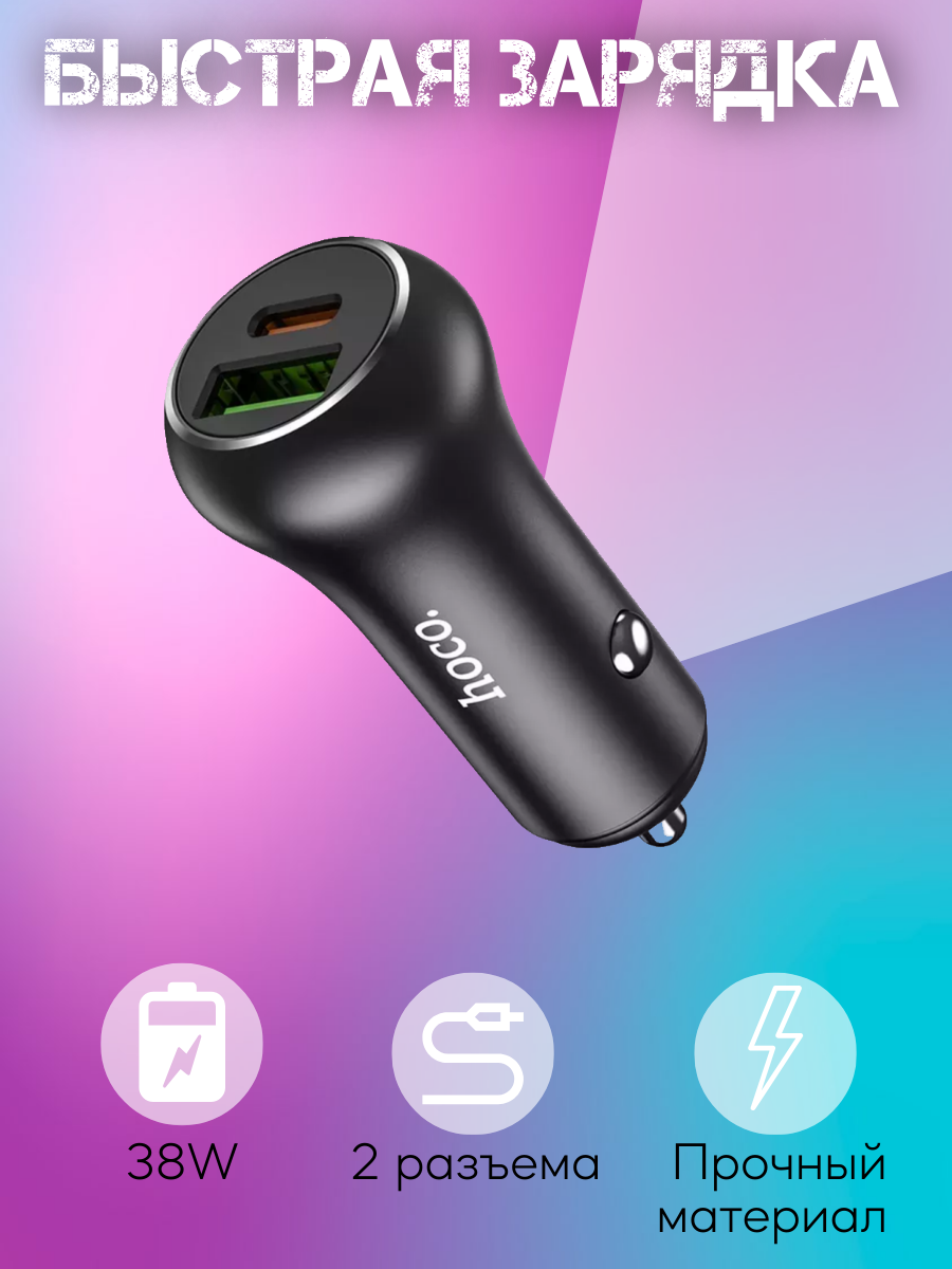 Автомобильное зарядное устройство Hoco Z38 является отличным устройством для зарядки вашего гаджета через USB или Type-С порт.