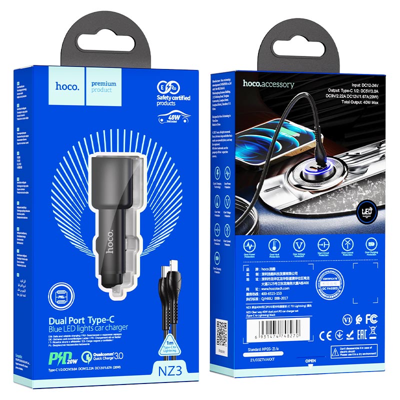 Сетевое зарядное устройство Hoco C127A + кабель Type-C Lightning 1 м, черный 2 023.50 руб. / шт.
