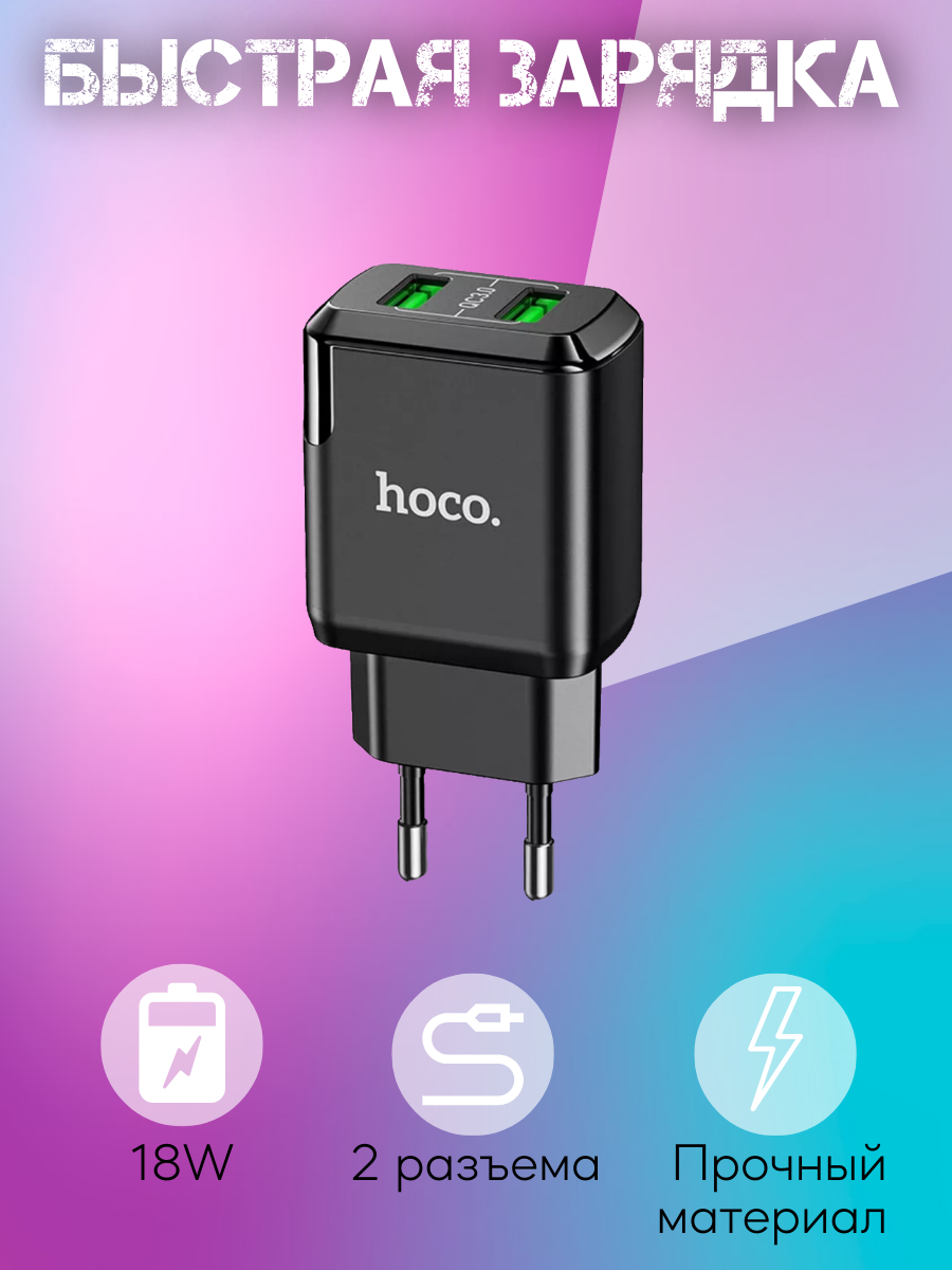 Зарядное устройство СЗУ 2USB Hoco N6 QC3.0 + кабель micro черный