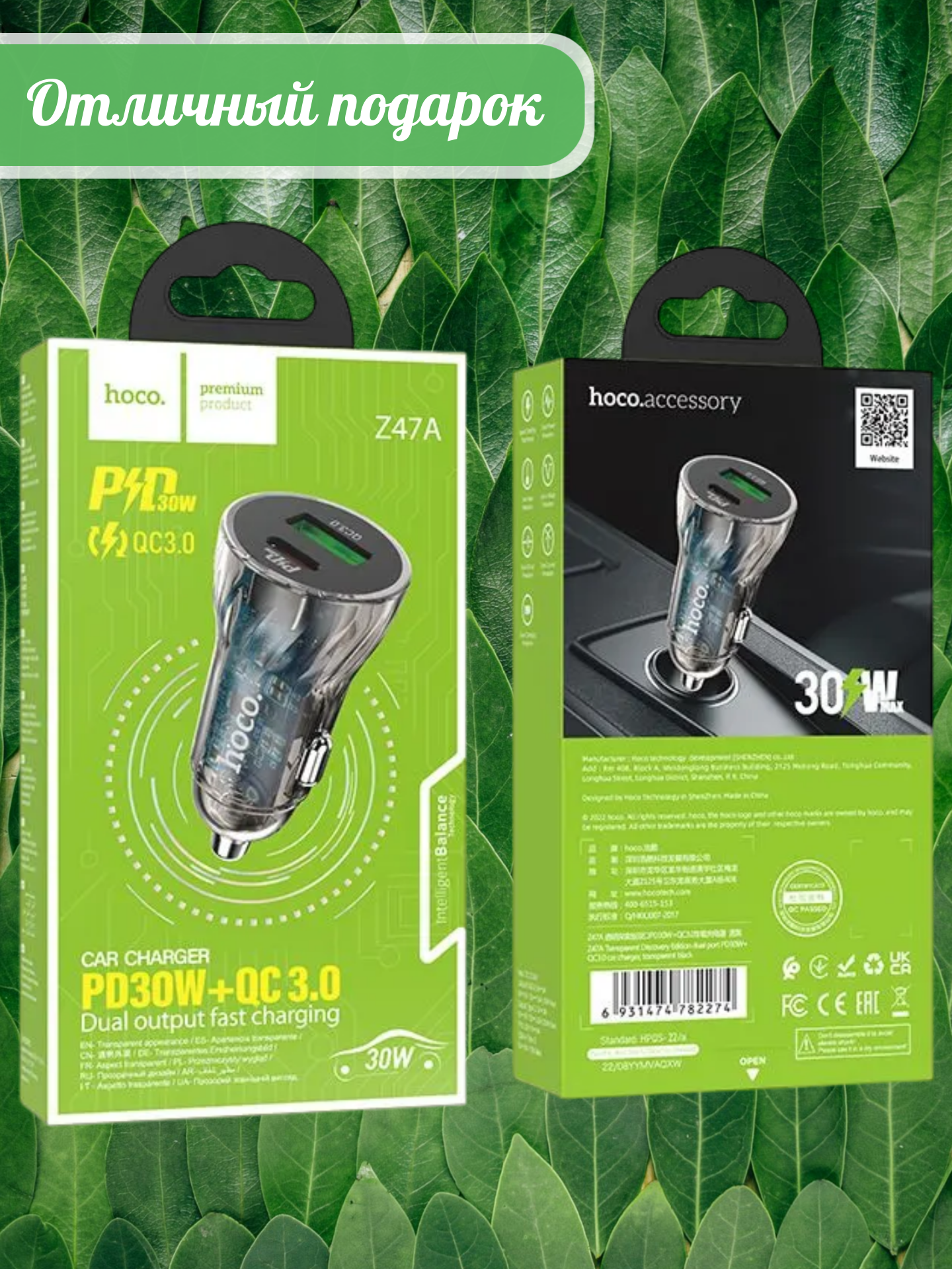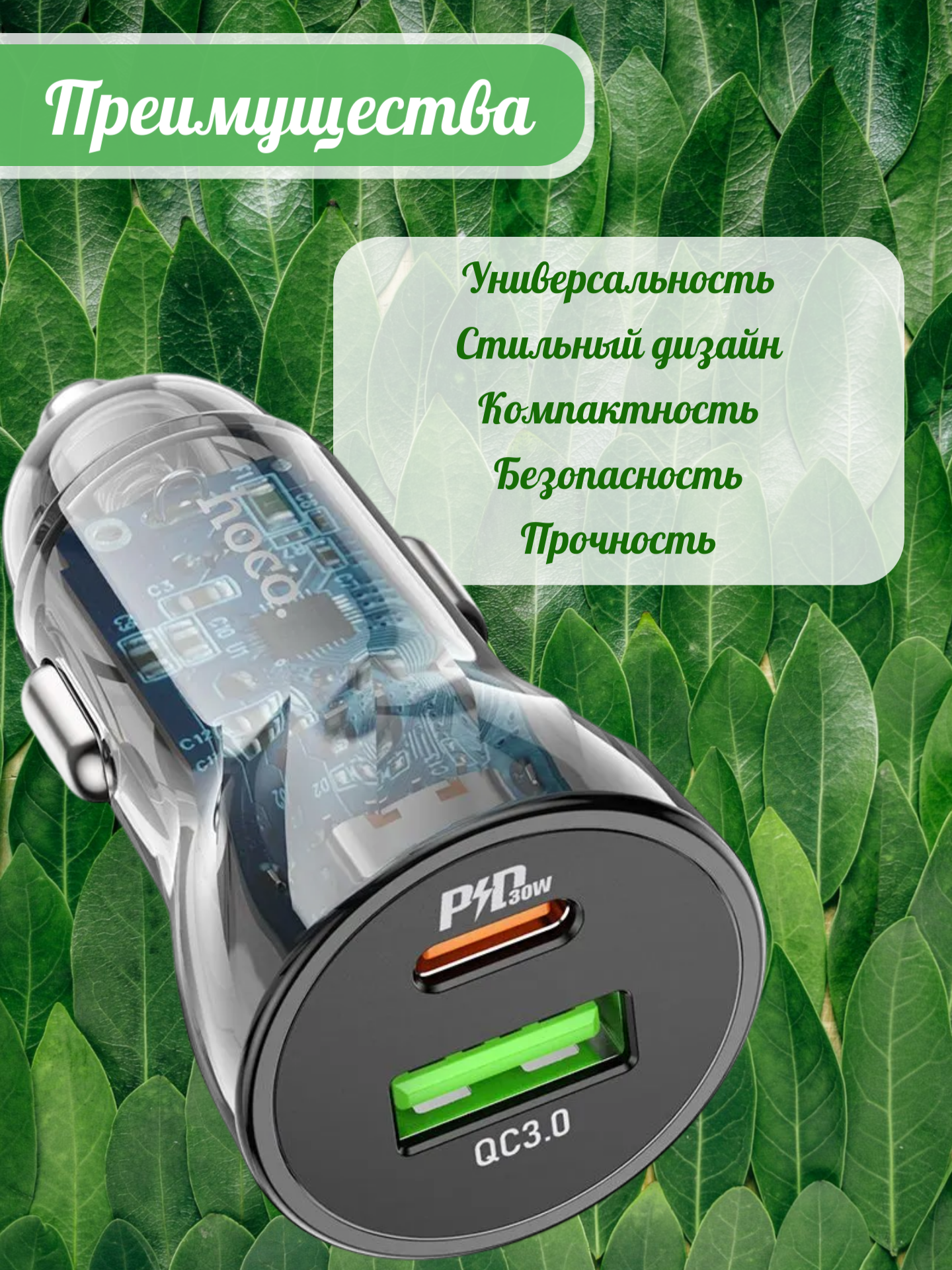 Hoco Z47A — это современное автомобильное зарядное устройство с прозрачным корпусом, которое обеспечивает быструю и эффективную зарядку ваших гаджетов во время поездок.
