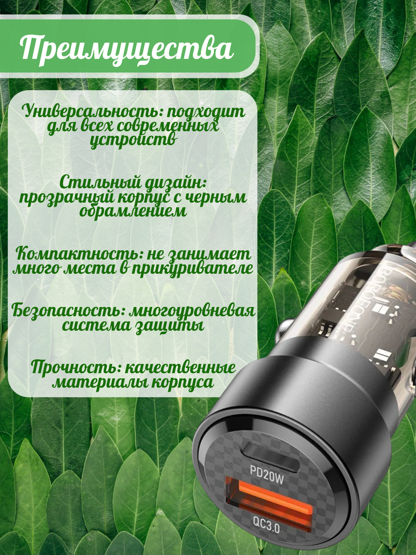 Безопасность использования гарантируется встроенной защитой от перегрузок и короткого замыкания. Устройство автоматически определяет оптимальное напряжение для каждого подключенного устройства.