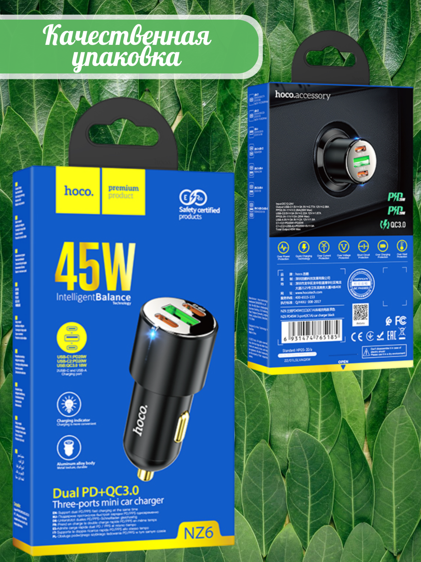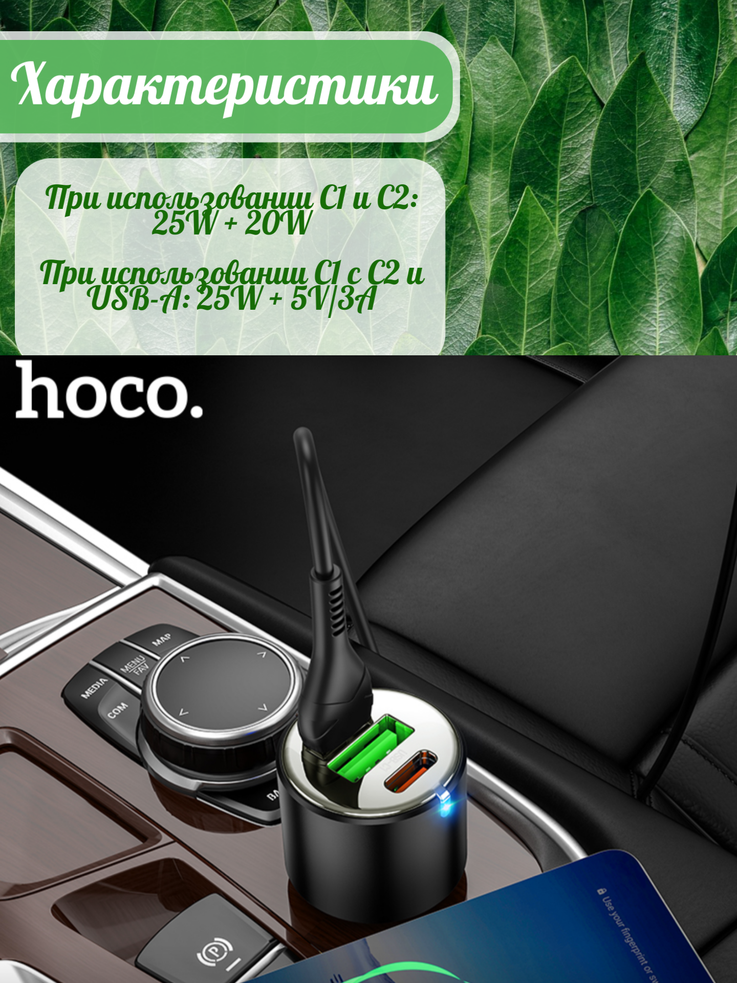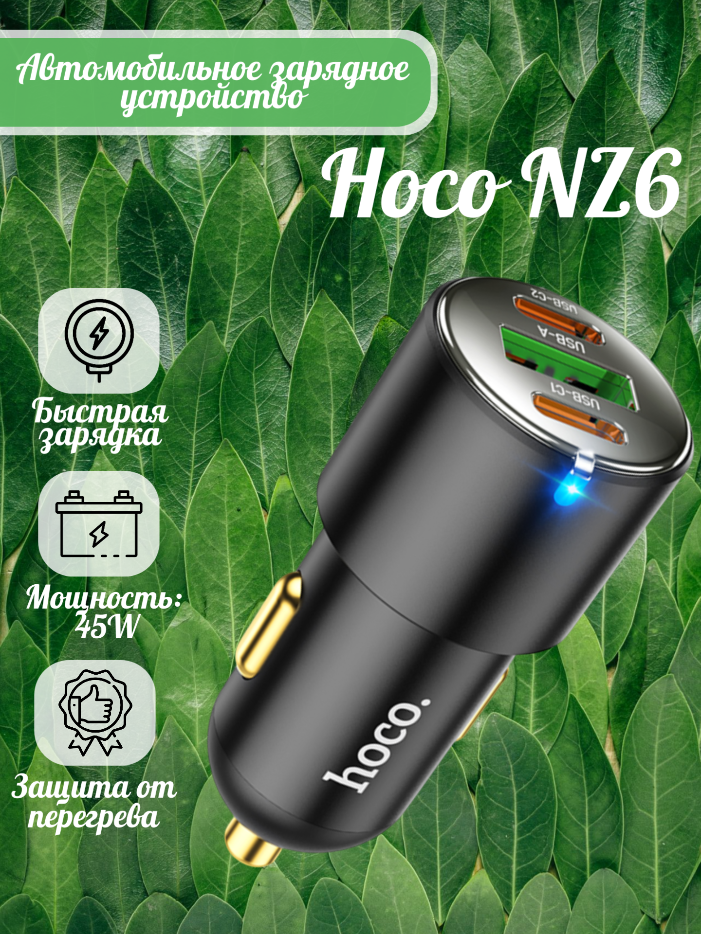 Автомобильная быстрая зарядка Hoco NZ6 45W — это современное зарядное устройство, разработанное специально для использования в автомобиле и обеспечивающее быструю зарядку различных гаджетов.