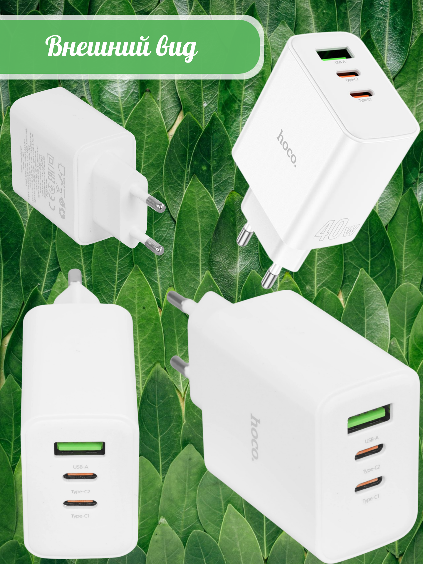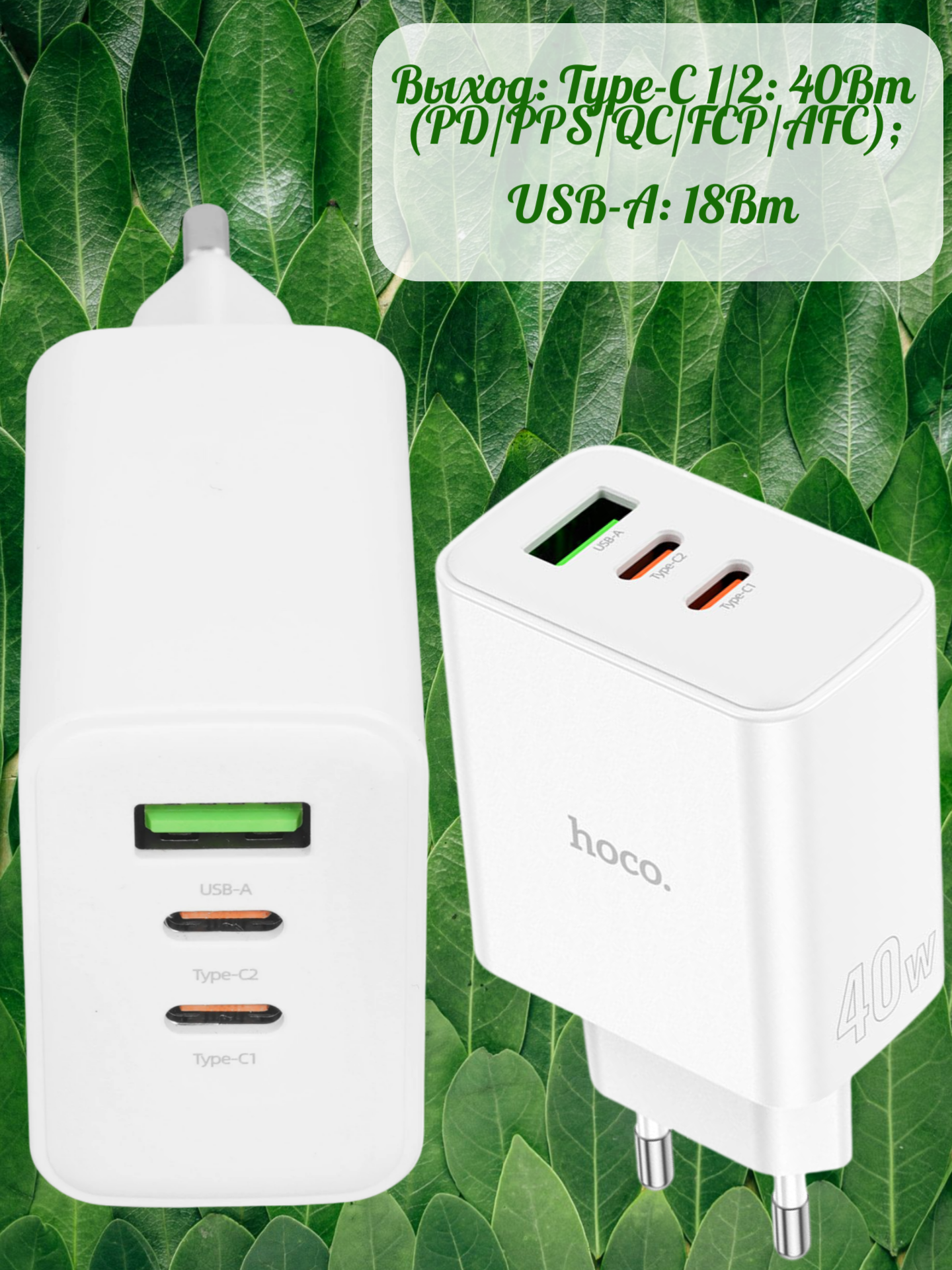 Выход: Type-C 1/2: 40Вт (PD/PPS/QC/FCP/AFC);
