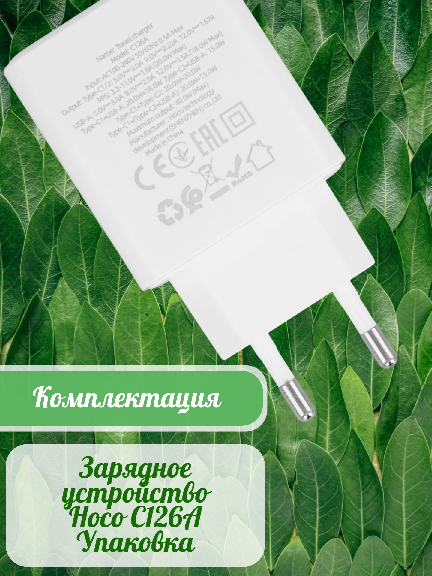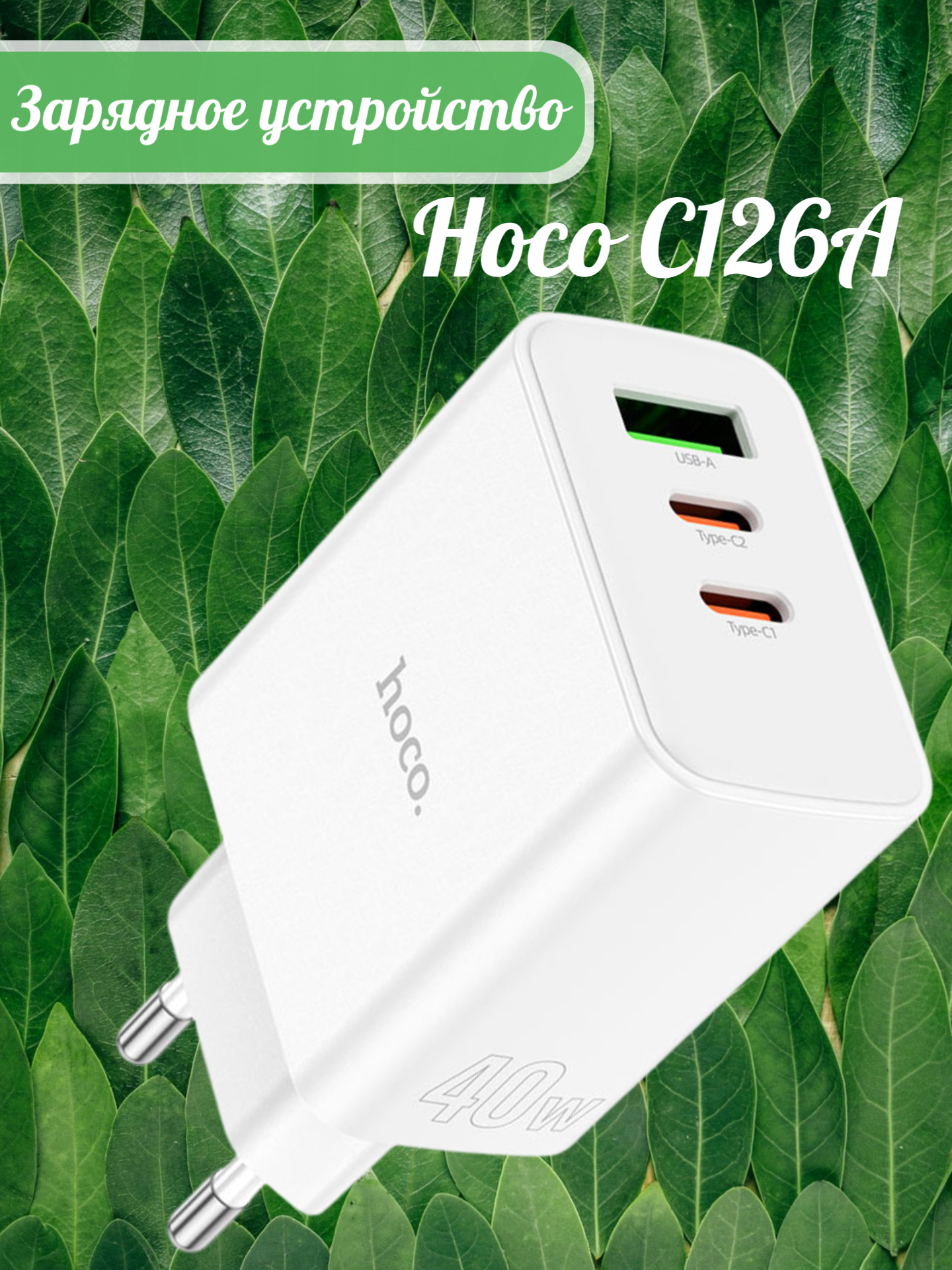 Hoco C126A - это сетевое зарядное устройство белого цвета, которое предназначено для зарядки различных устройств от сети переменного тока.