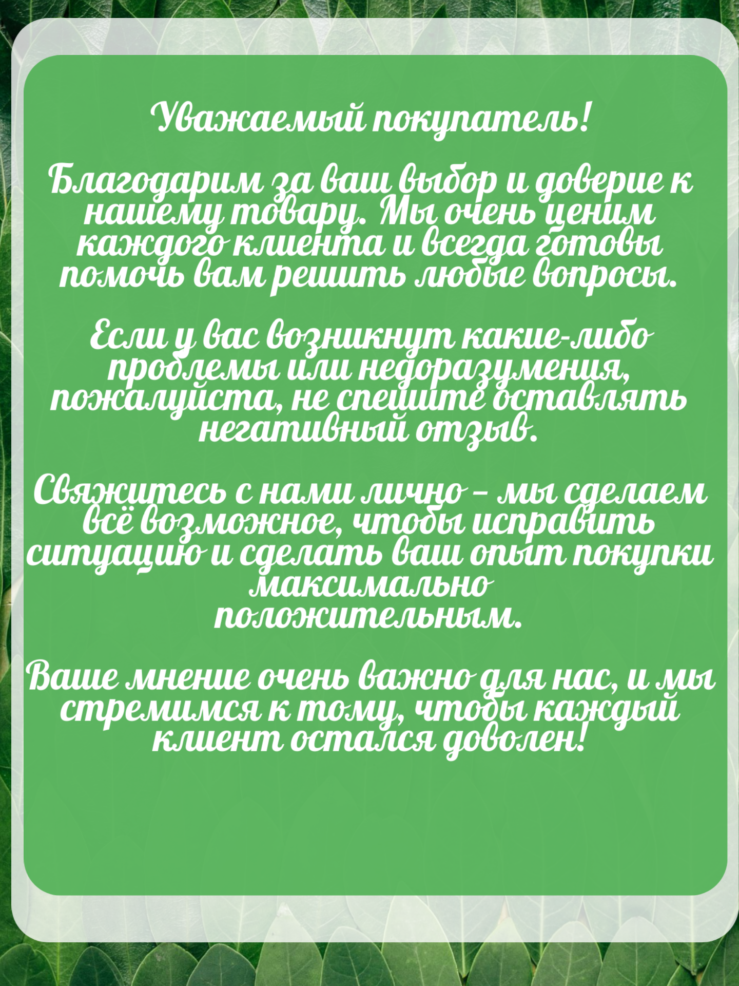 Мы ожидаем от вас честный и корректный отзыв. Поэтому не публикуем отзывы не по теме, отзывы с нецензурными выражениями и оскорблениями, а также с сылками на другие сайты.