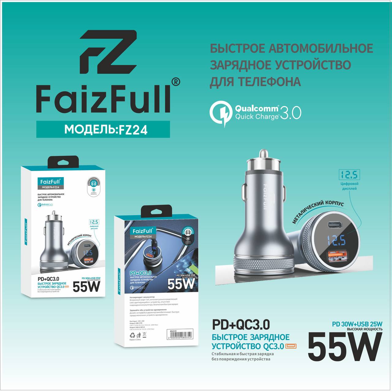 Автомобильное зарядное устройство FaizFull FZ24 — это современное решение для быстрой зарядки ваших электронных устройств прямо в автомобиле. Устройство оснащено передовыми технологиями быстрой зарядки PD и QC3.0, что позволяет максимально эффективно заряжать различные гаджеты.