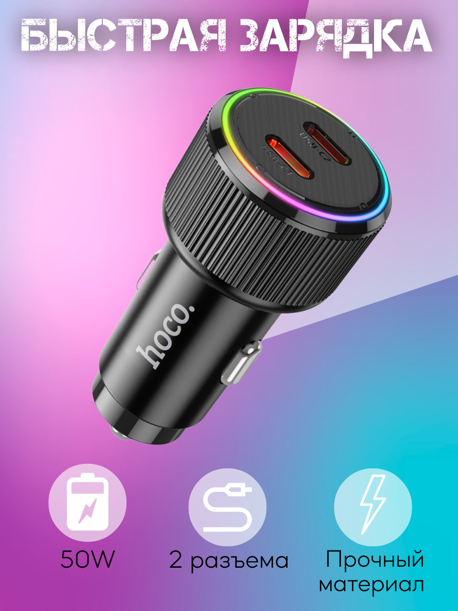 HOCO NZ14B Guerrero – это премиальное автомобильное зарядное устройство с двумя портами USB-C, обеспечивающее суммарную мощность до 50 Вт. Этот компактный и мощный аксессуар станет вашим надежным помощником в любых поездках, позволяя одновременно заряжать два устройства с высокой скоростью и эффективностью.