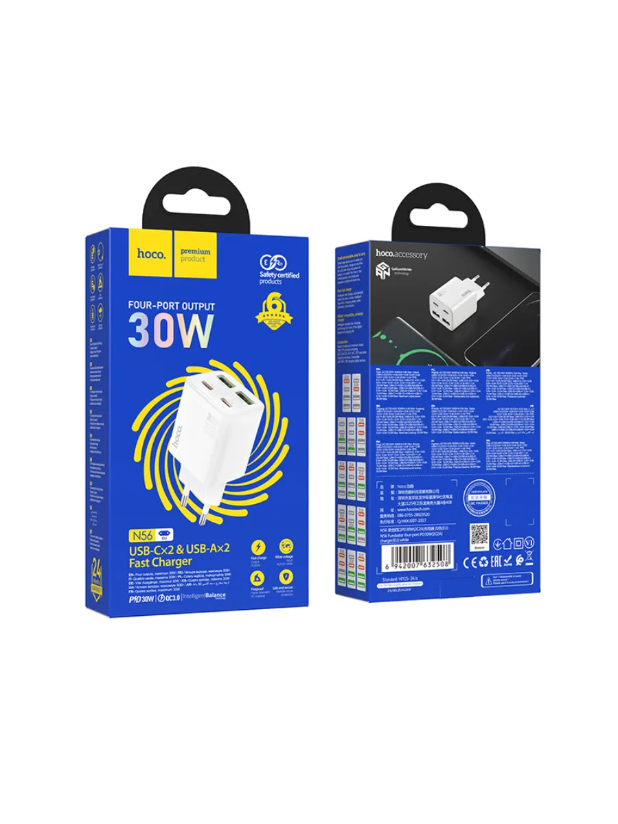 Зарядное устройство Hoco N56 — это универсальное и компактное решение для зарядки различных устройств, таких как смартфоны, планшеты, наушники и другие гаджеты.