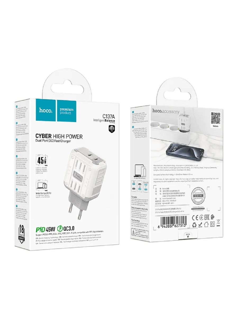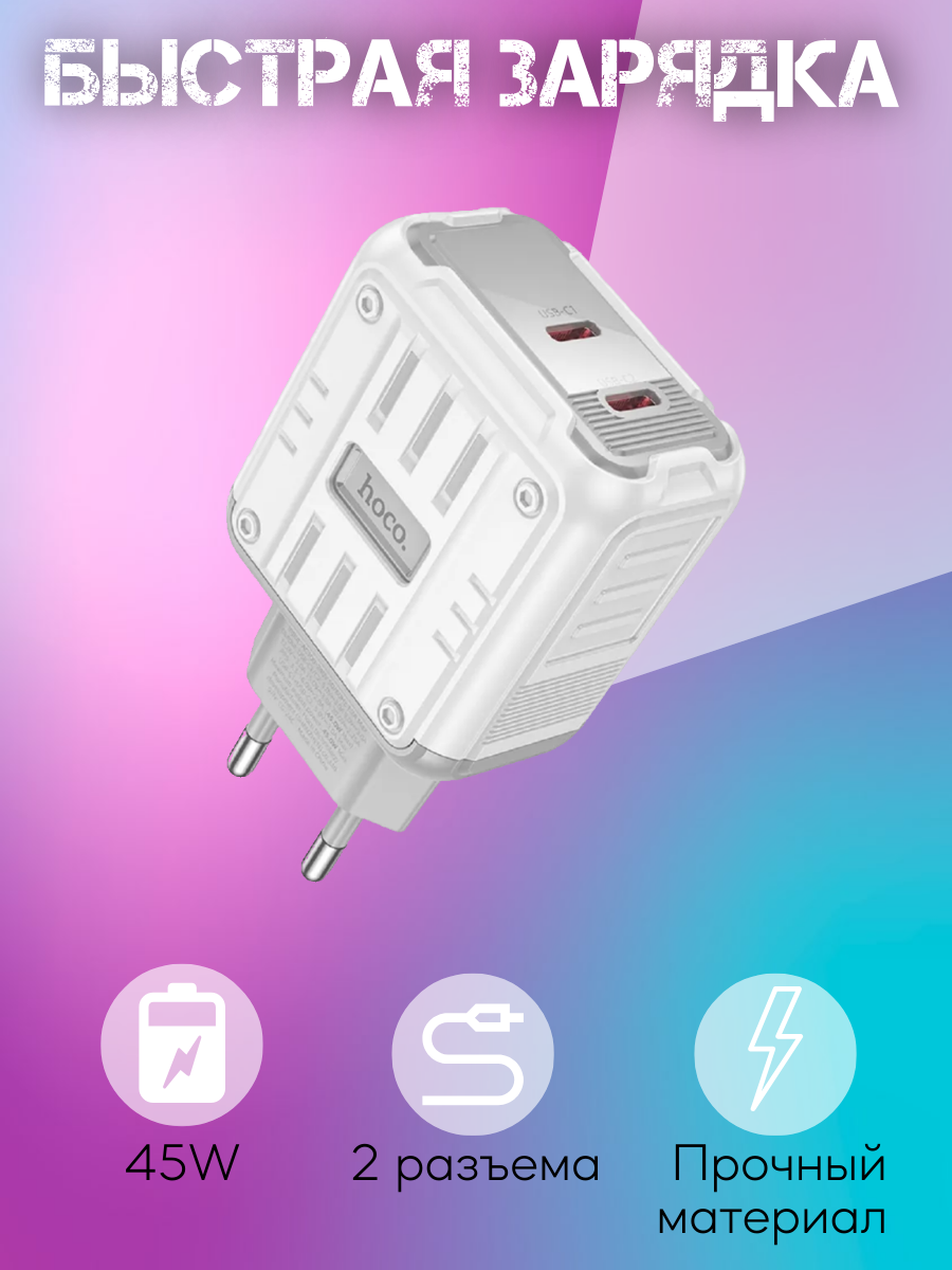 Сетевое зарядное устройство Hoco C127A + кабель Type-C Lightning 1 м, черный 2 023.50 руб. / шт.