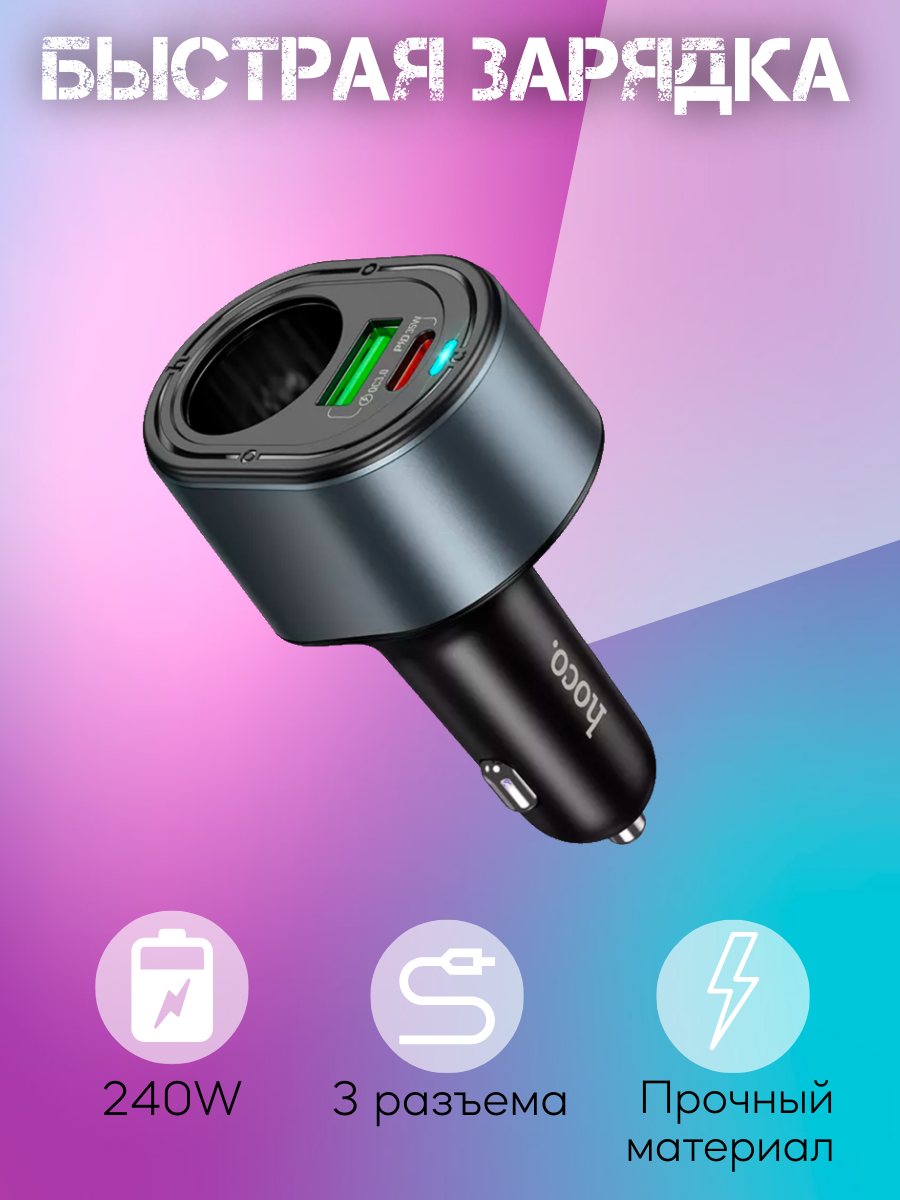 Зарядное устройство Hoco Z56 — это универсальное автомобильное зарядное устройство с двумя портами USB и поддержкой быстрой зарядки Quick Charge 3.0.