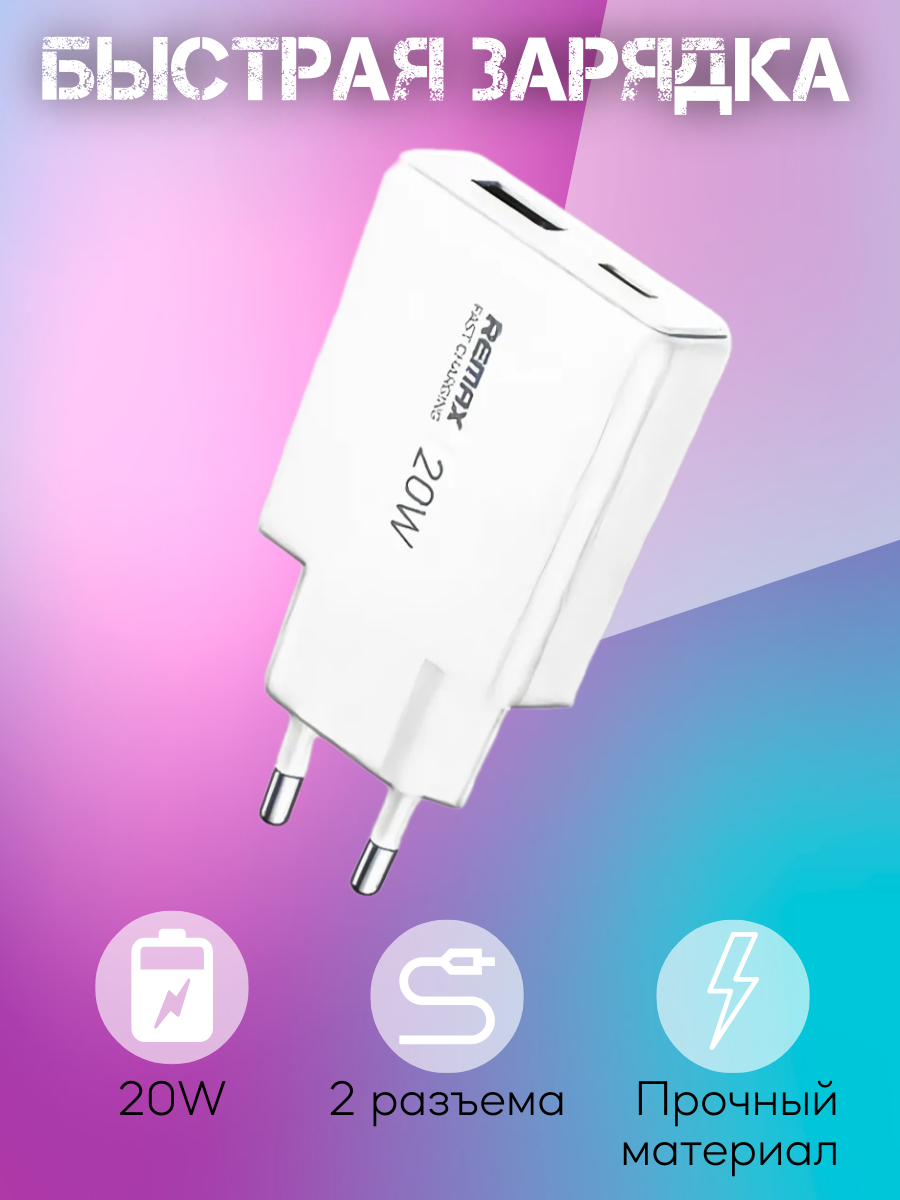 Remax U01-AC20W — это универсальное зарядное устройство, которое подходит для зарядки различных типов устройств, таких как смартфоны, планшеты, наушники и другие гаджеты с поддержкой USB-зарядки.