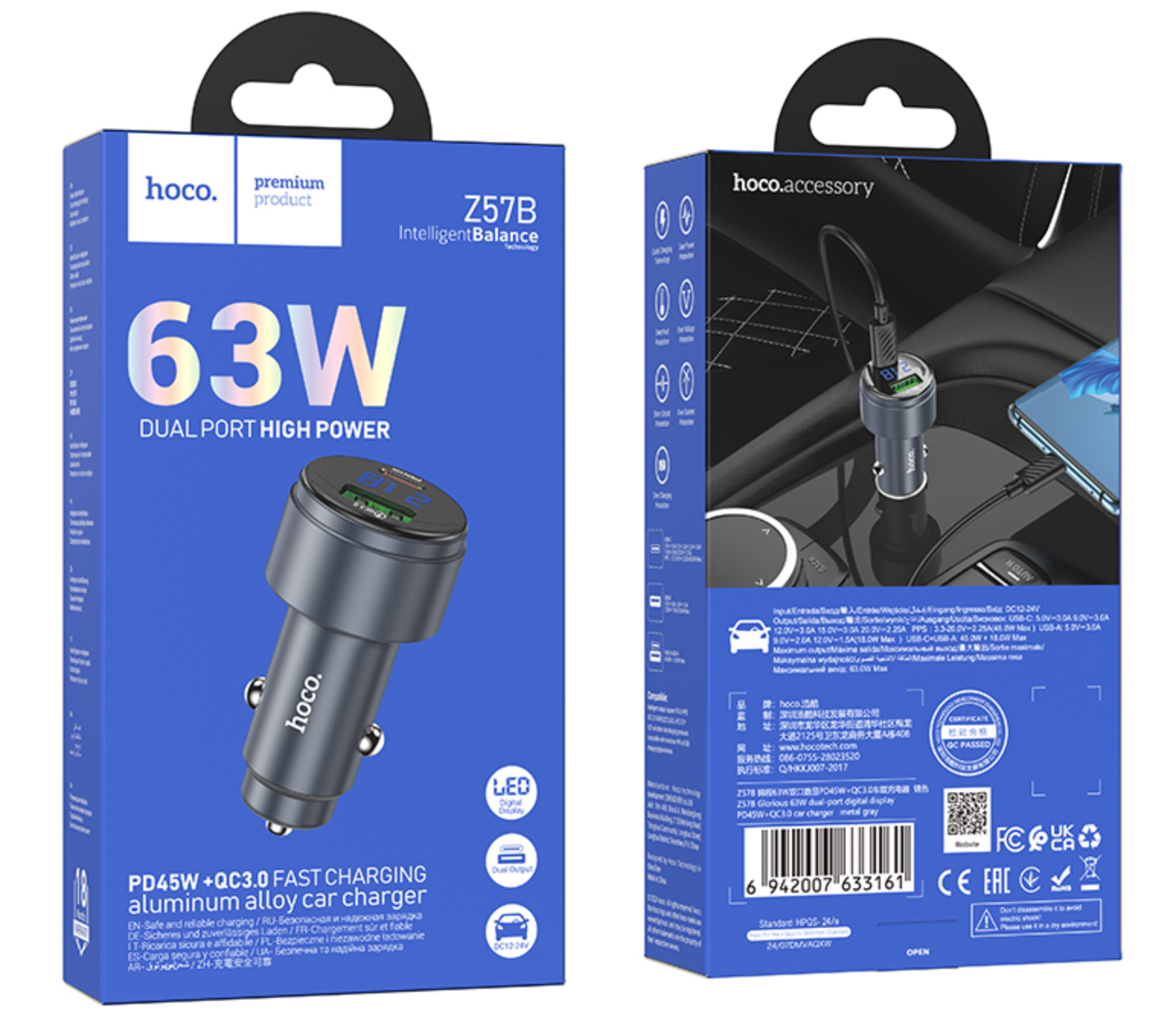 Hoco Z57B поддерживает современные стандарты быстрой зарядки PD, QC, FCP и AFC, что гарантирует совместимость с широким спектром устройств. Устройство станет незаменимым помощником для тех, кто часто путешествует на автомобиле и нуждается в надёжной и быстрой зарядке своих гаджетов в дороге.