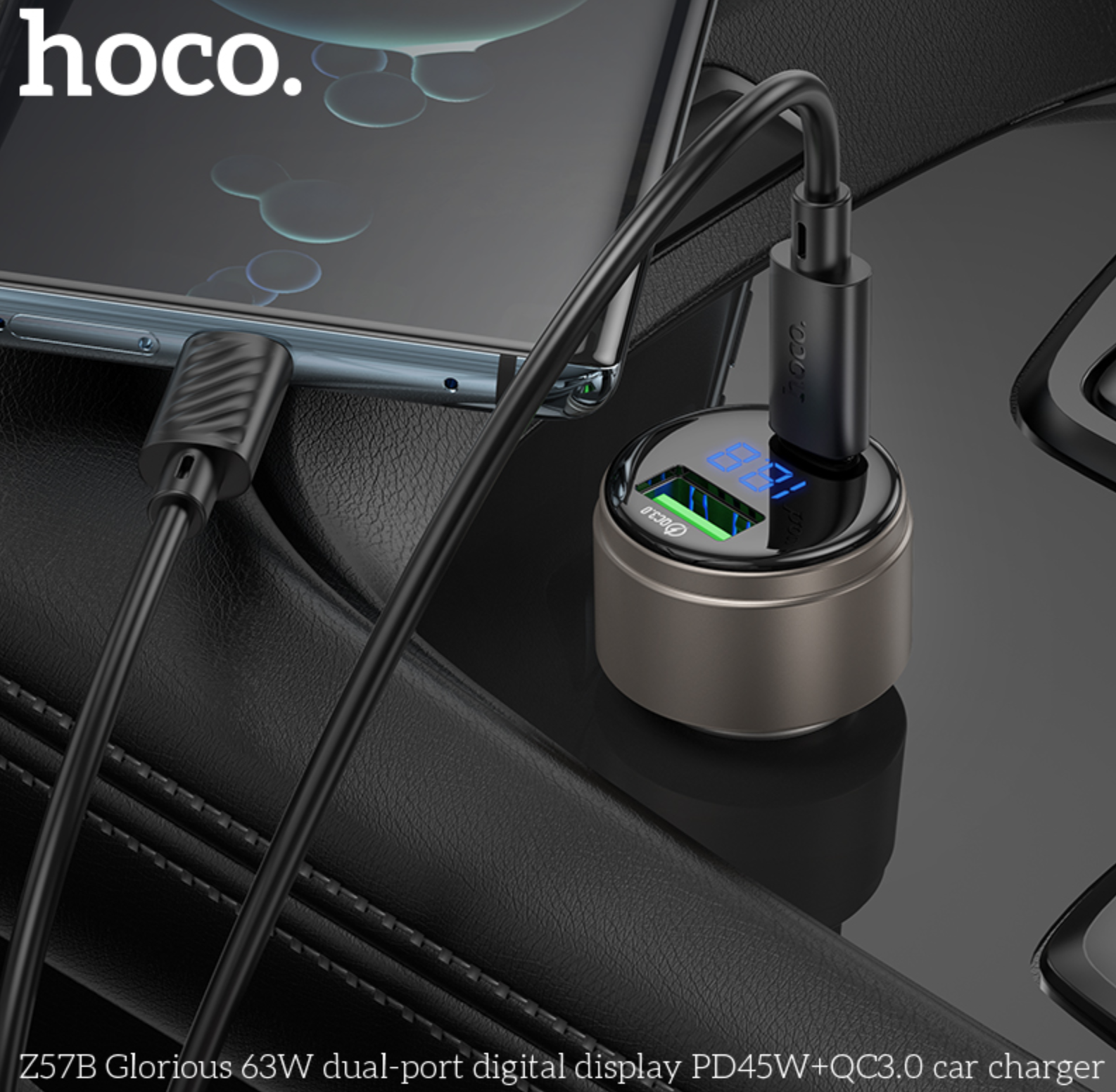 Автомобильное зарядное устройство Hoco Z57B 63W — это мощное и функциональное решение для быстрой зарядки нескольких устройств одновременно в автомобиле.