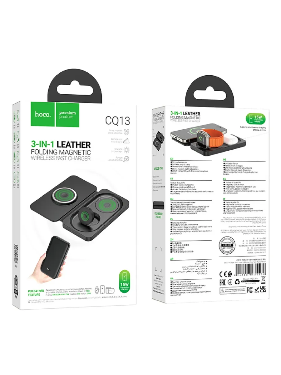 Hoco CQ13 15W - складная, портативный размер, зарядка мобильных телефонов/часов/наушников, блок питания 15 Вт, беспроводное зарядное устройство.
