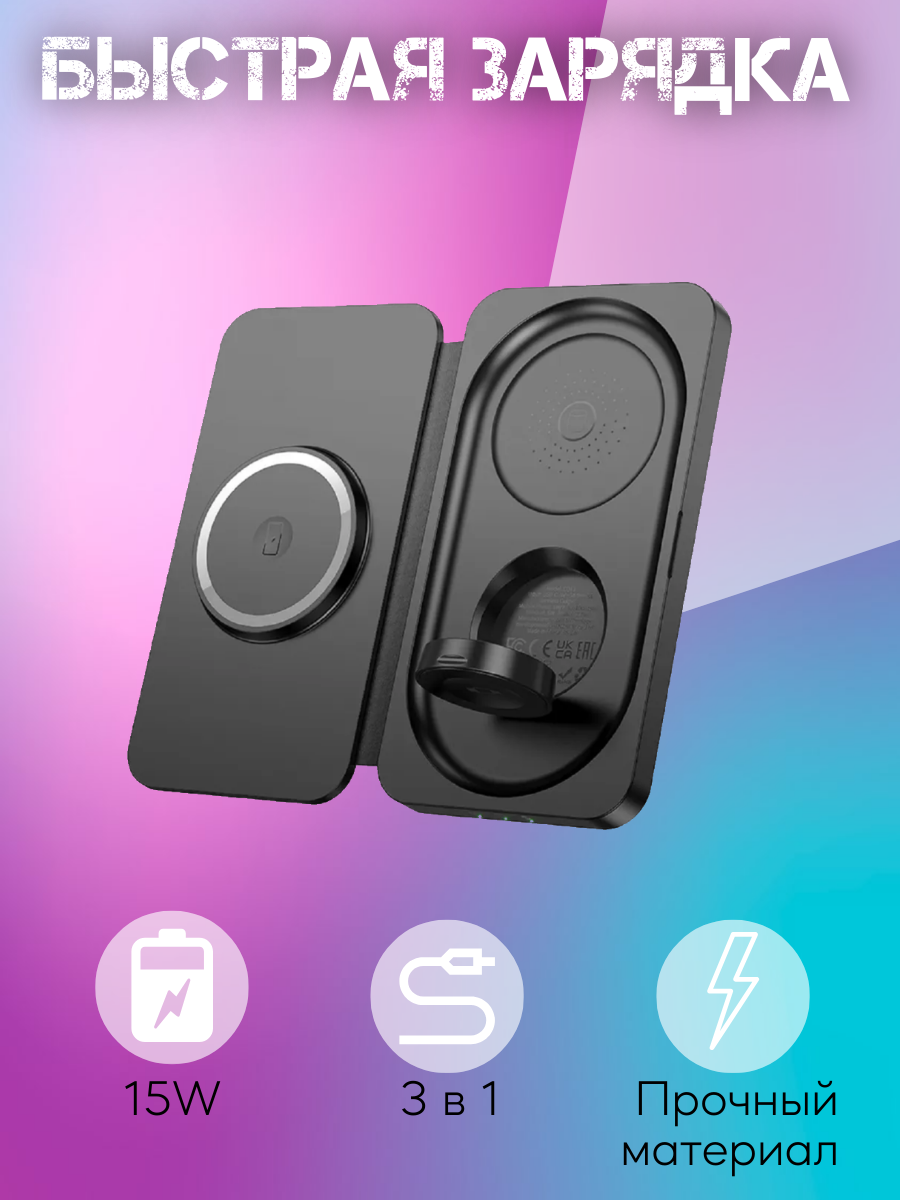 Беспроводная зарядка Hoco CQ13 3 в 1 — это универсальное и стильное решение для зарядки ваших устройств.