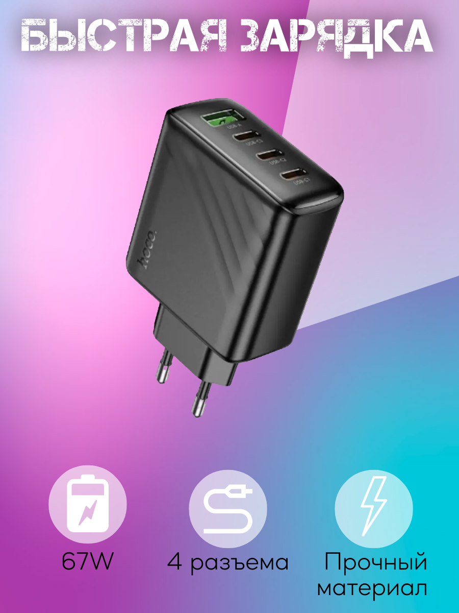 Сетевое зарядное устройство Hoco C127A + кабель Type-C Lightning 1 м, черный 2 023.50 руб. / шт.