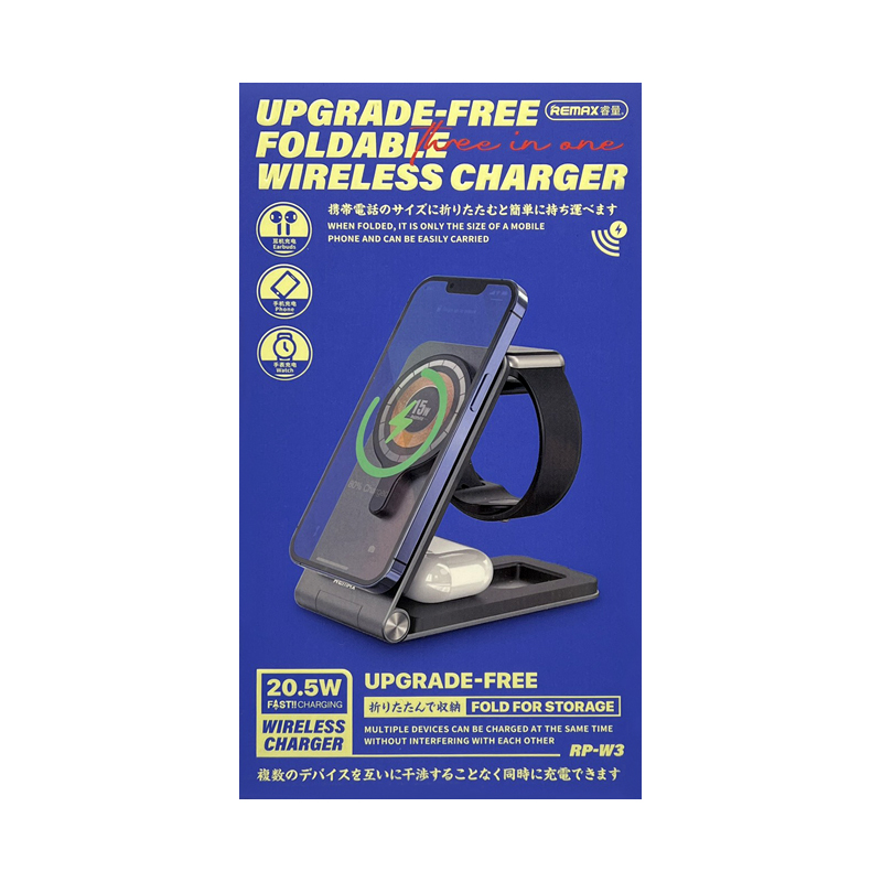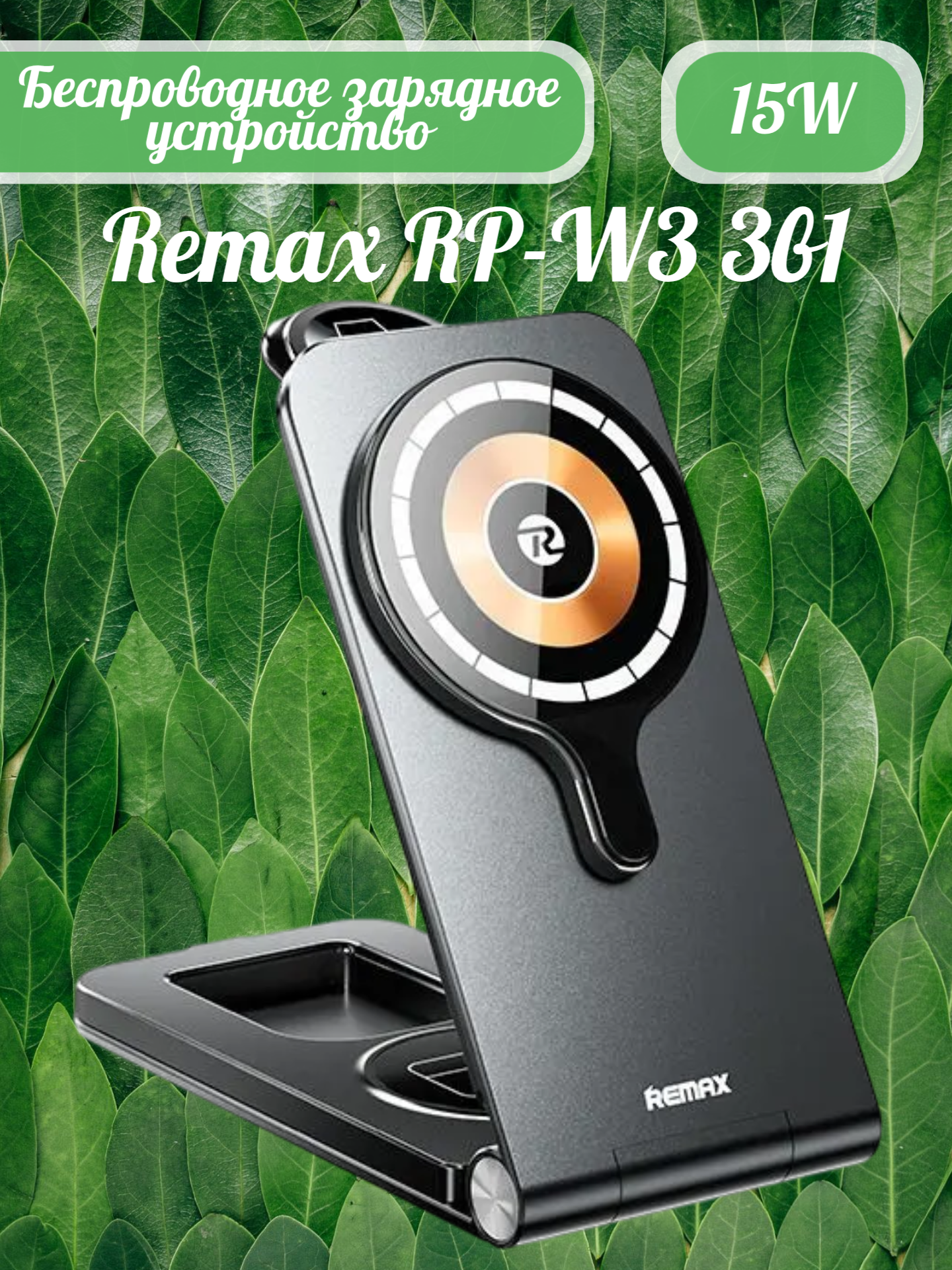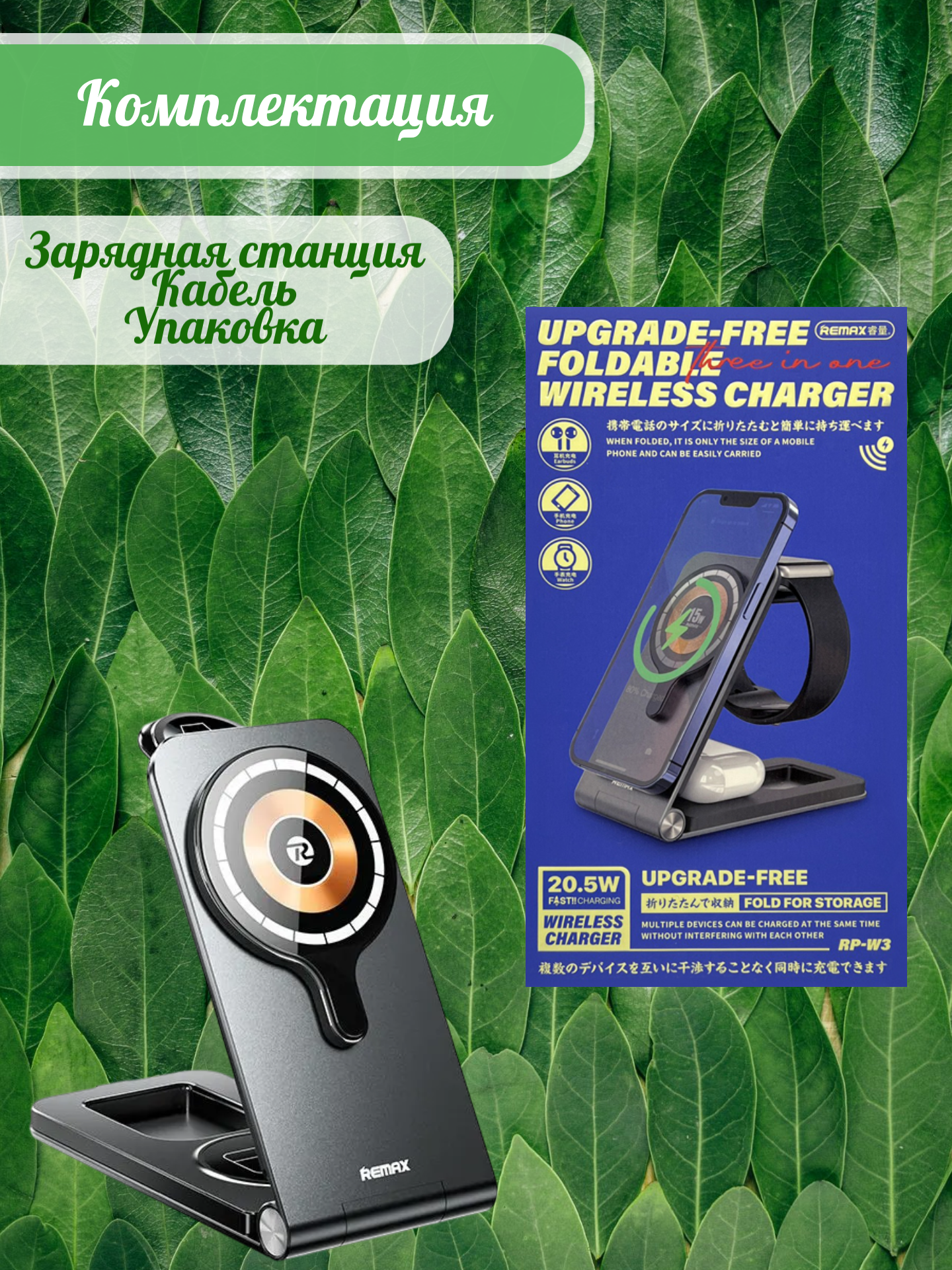 Беспроводная зарядка Remax RP-W3 3в1 — это универсальное и стильное решение для зарядки ваших мобильных устройств.