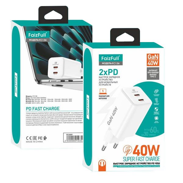 Сетевое зарядное устройство FaizFull FC136 — это высококачественное и мощное решение для быстрой зарядки ваших устройств. С выходной мощностью 40 Вт и технологией GaN оно позволяет эффективно и безопасно подзаряжать смартфоны, планшеты и другие гаджеты, поддерживающие USB-C.