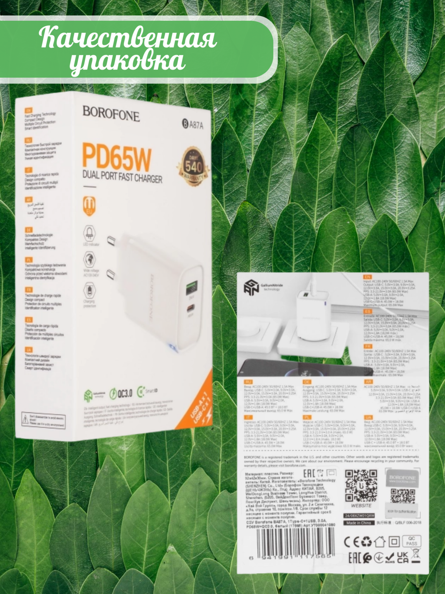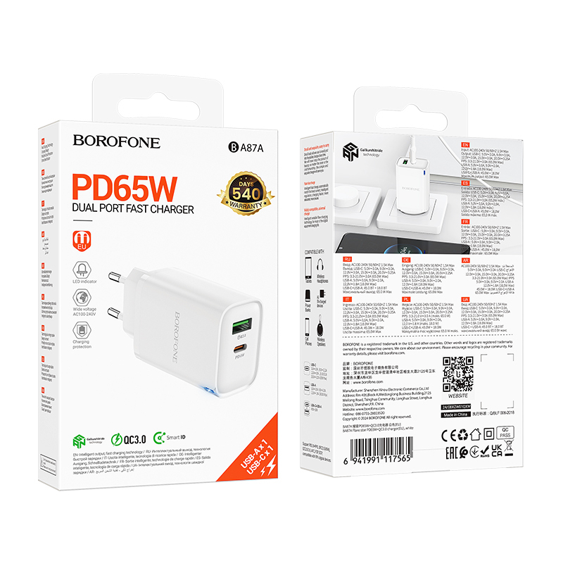 Borofone Ba87A поддерживает технологию быстрой зарядки Quick Charge 3.0, что обеспечивает быструю зарядку совместимых смартфонов и планшетов. Устройство автоматически определяет тип подключённого устройства и выбирает оптимальный режим зарядки.