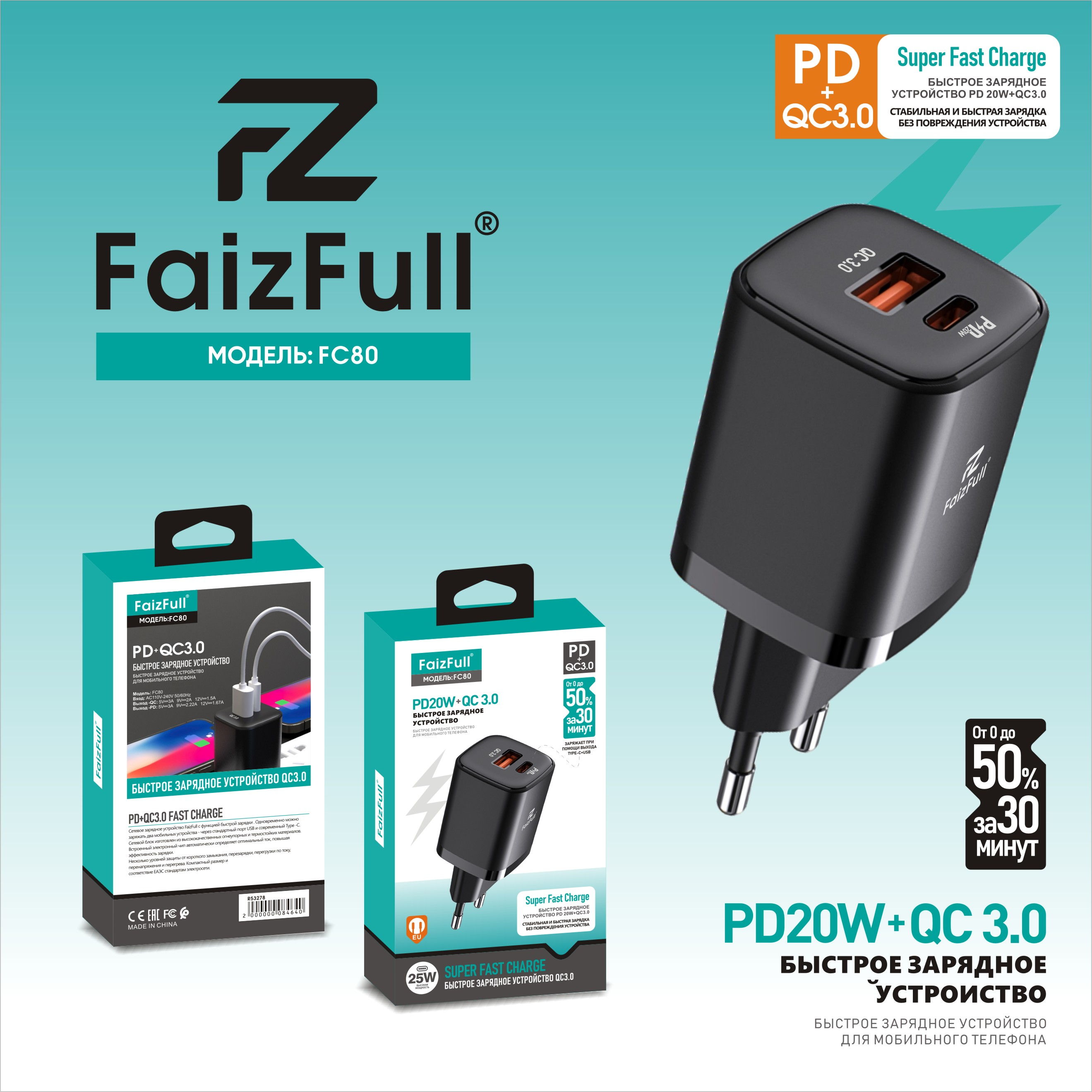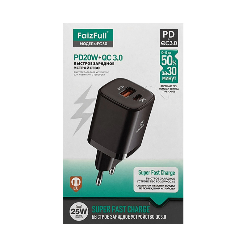 Зарядное устройство FaizFull FC80 — это компактное и мощное решение для зарядки различных устройств.