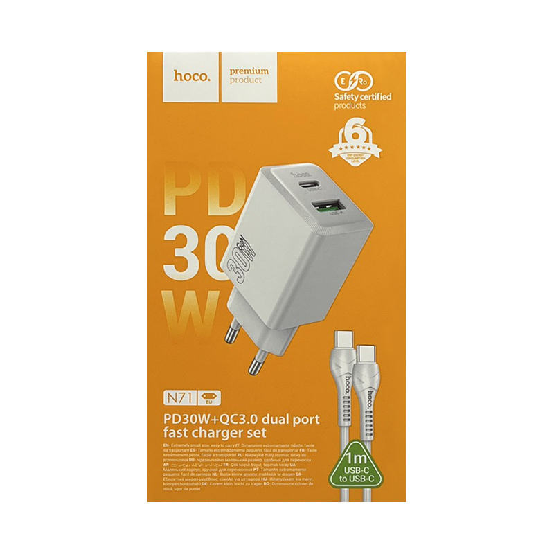 Зарядное устройство Hoco N71 — это компактное решение для быстрой зарядки мобильных устройств.