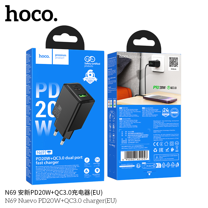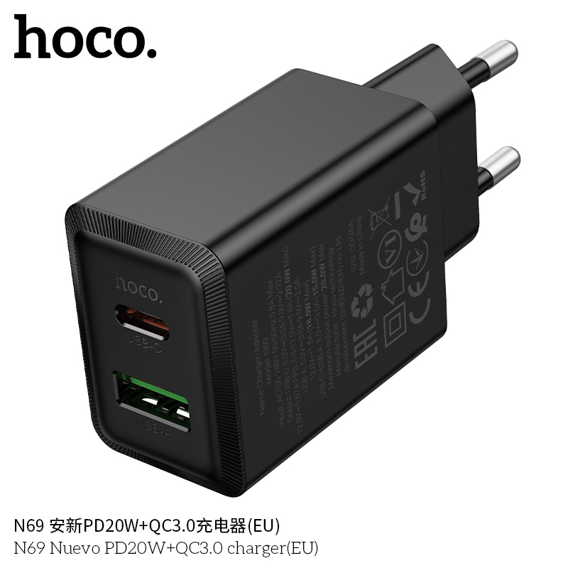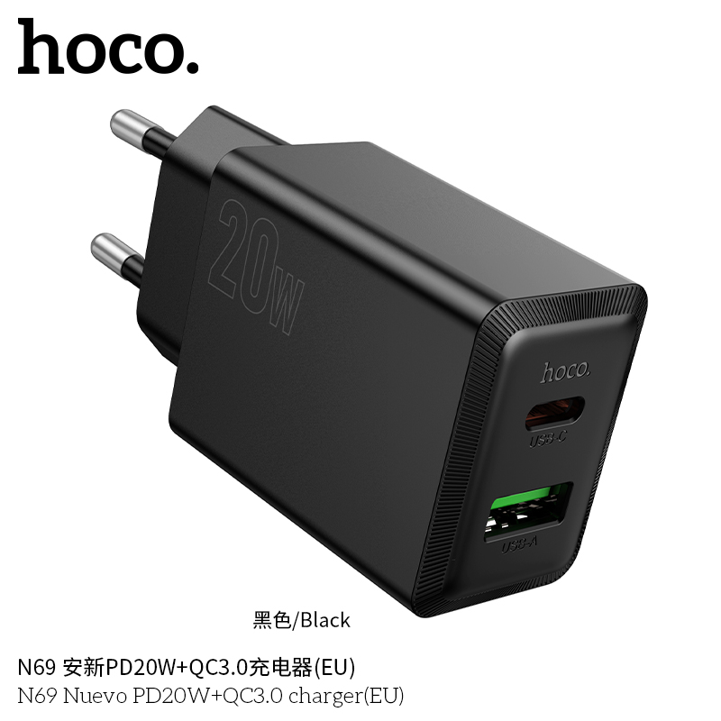 Обеспечьте быструю и безопасную зарядку ваших устройств с помощью сетевого зарядного устройства Hoco N69 — надёжного помощника для эффективной зарядки!