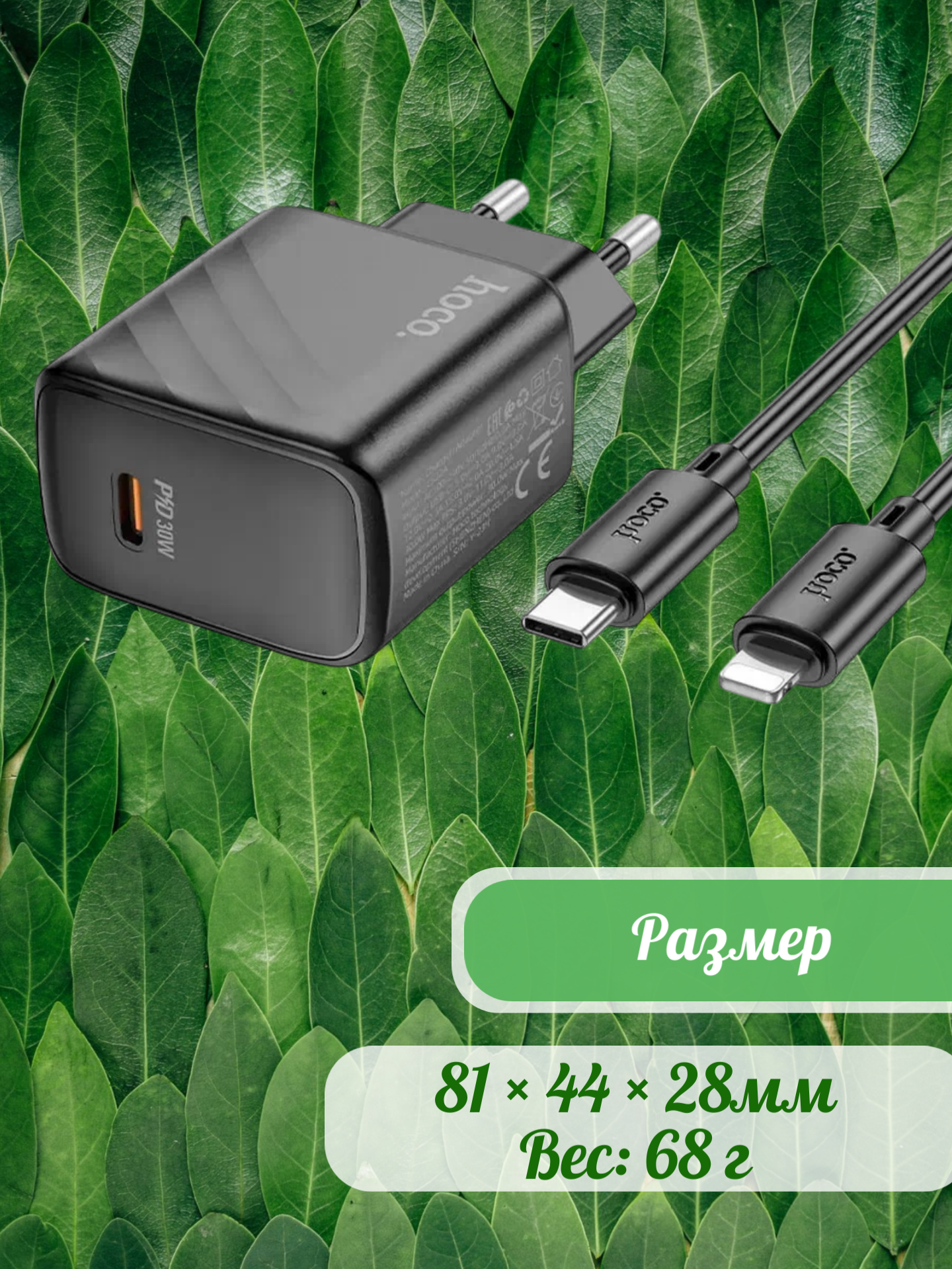 8. Вес: вес одного зарядного устройства – 46г, вес набора с кабелем – 68г.