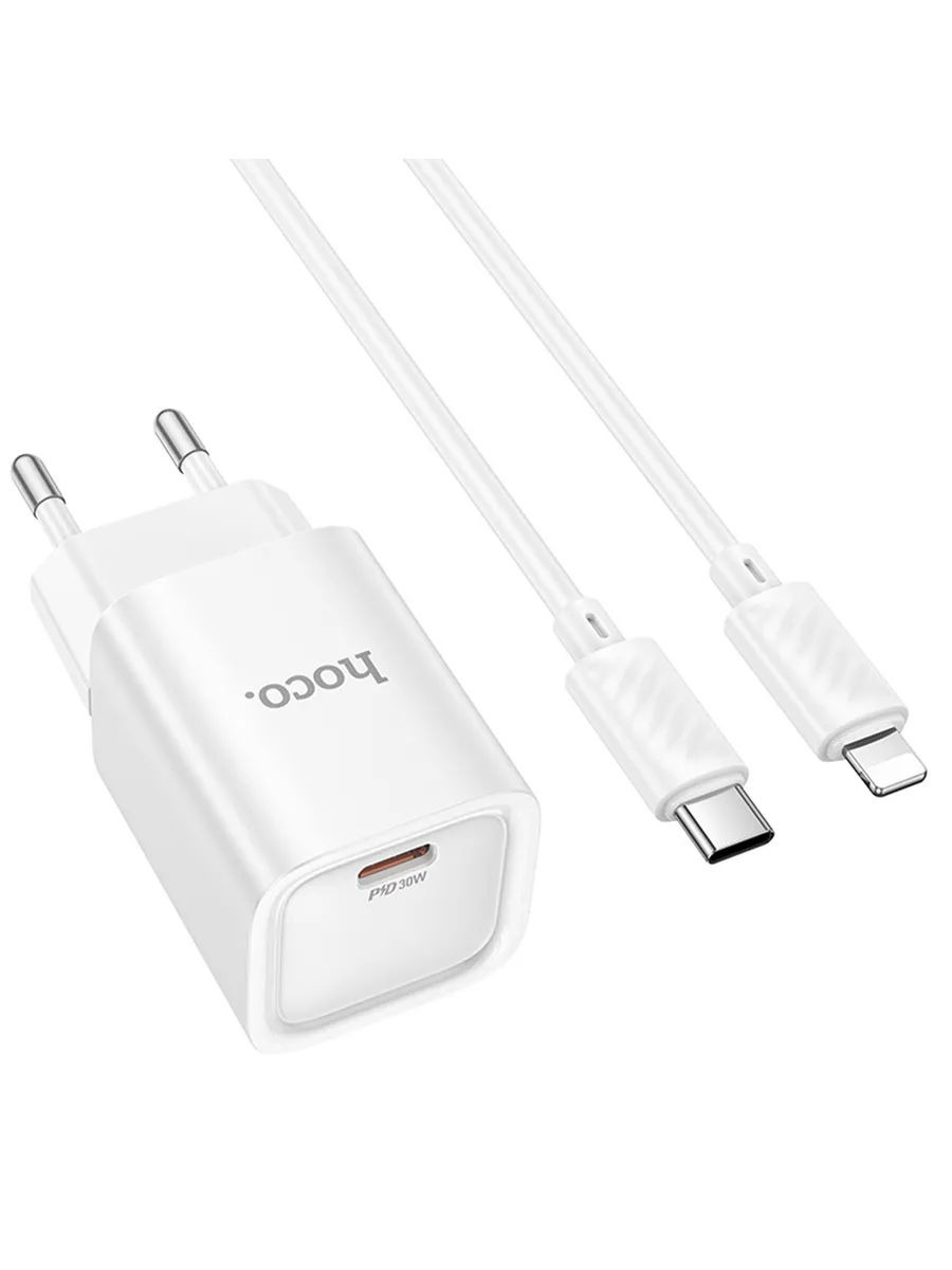 Зарядное устройство Hoco C148A+кабель Type-C/Lightning, белый