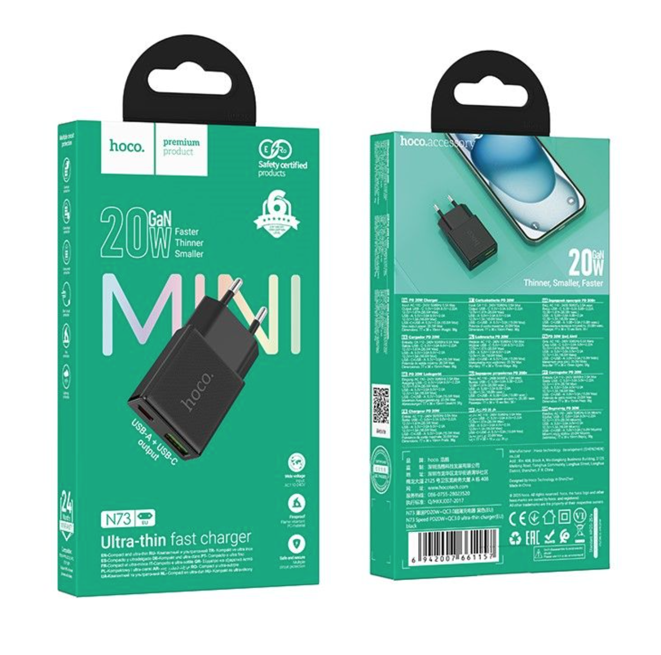 Сетевое зарядное устройство Hoco C127A + кабель Type-C Lightning 1 м, черный 2 023.50 руб. / шт.