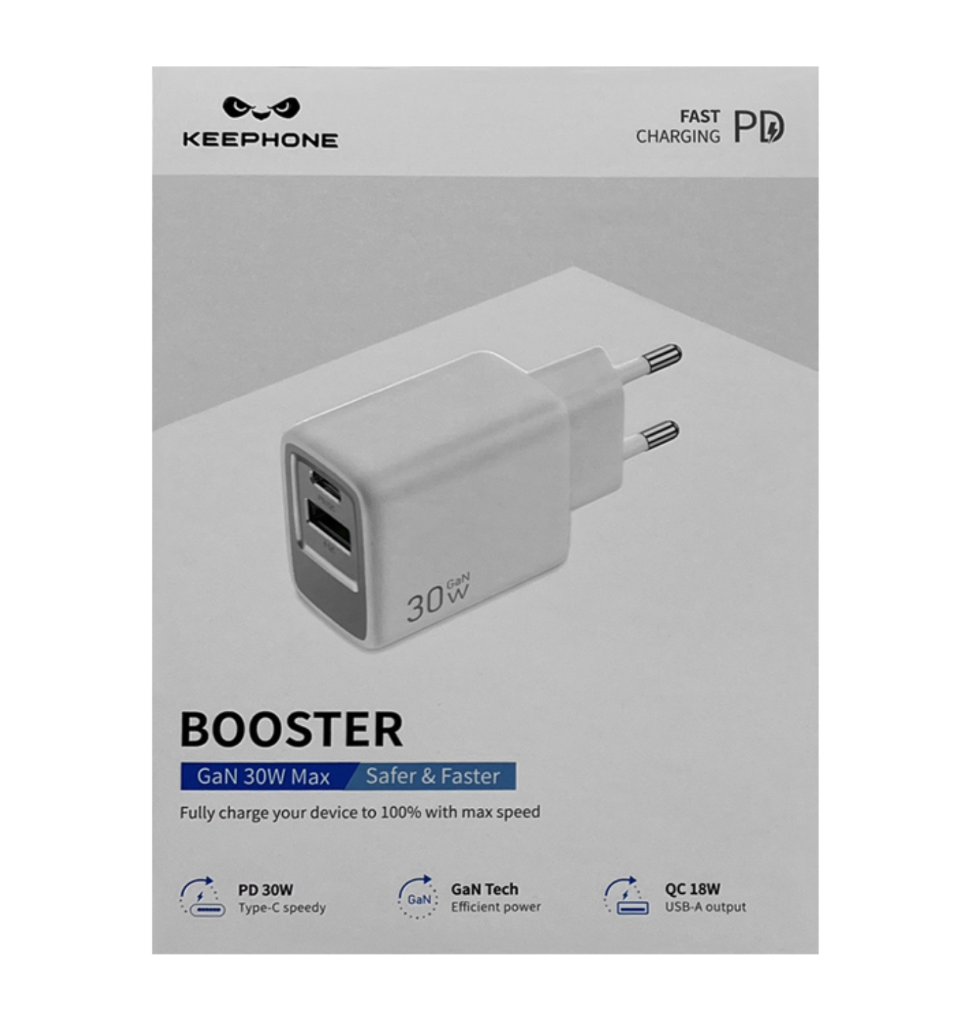 Компактные размеры и современный дизайн делают Keephone Booster GAN 30W удобным для использования как дома, так и в офисе. Универсальность портов позволяет заряжать практически любые современные устройства, что делает это зарядное устройство незаменимым помощником в повседневной жизни.