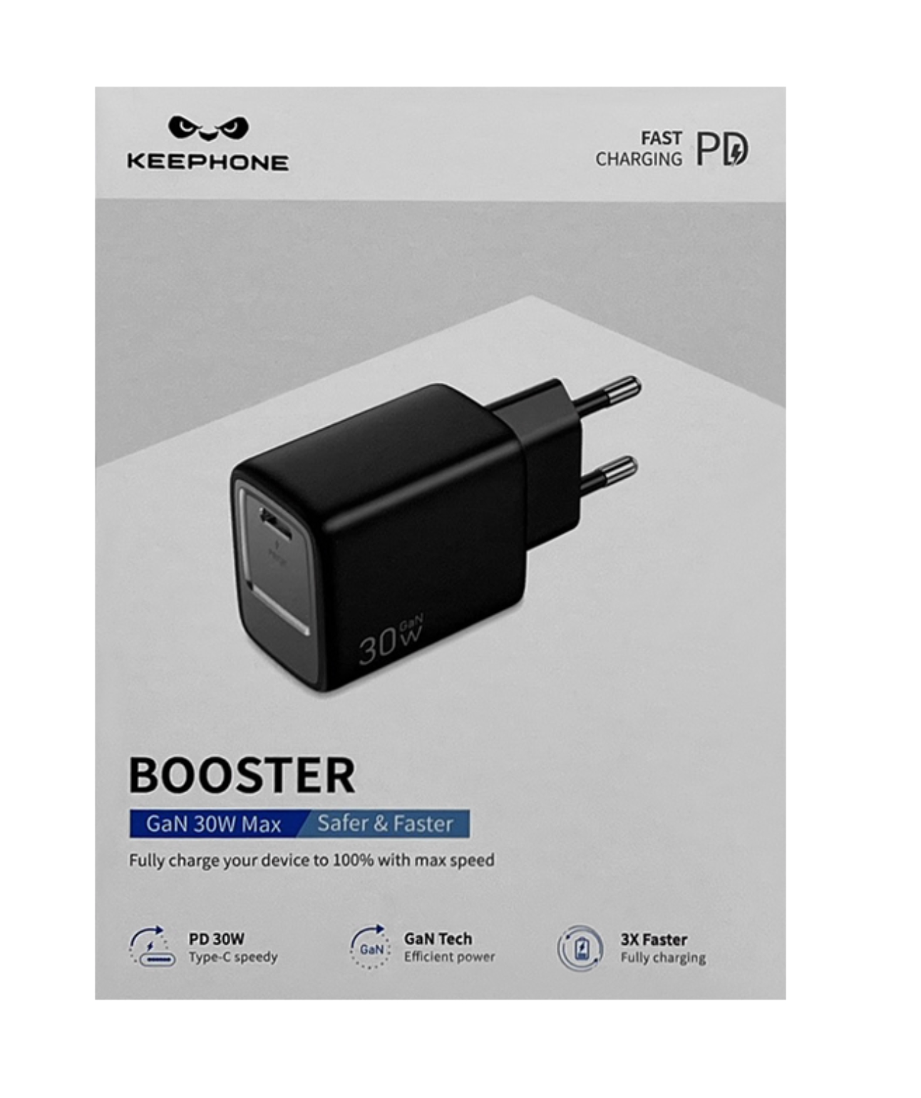 Keephone Booster GAN 30W — это сочетание передовых технологий, надёжности и компактности, которое станет незаменимым помощником в повседневной жизни для быстрой и безопасной зарядки ваших устройств.