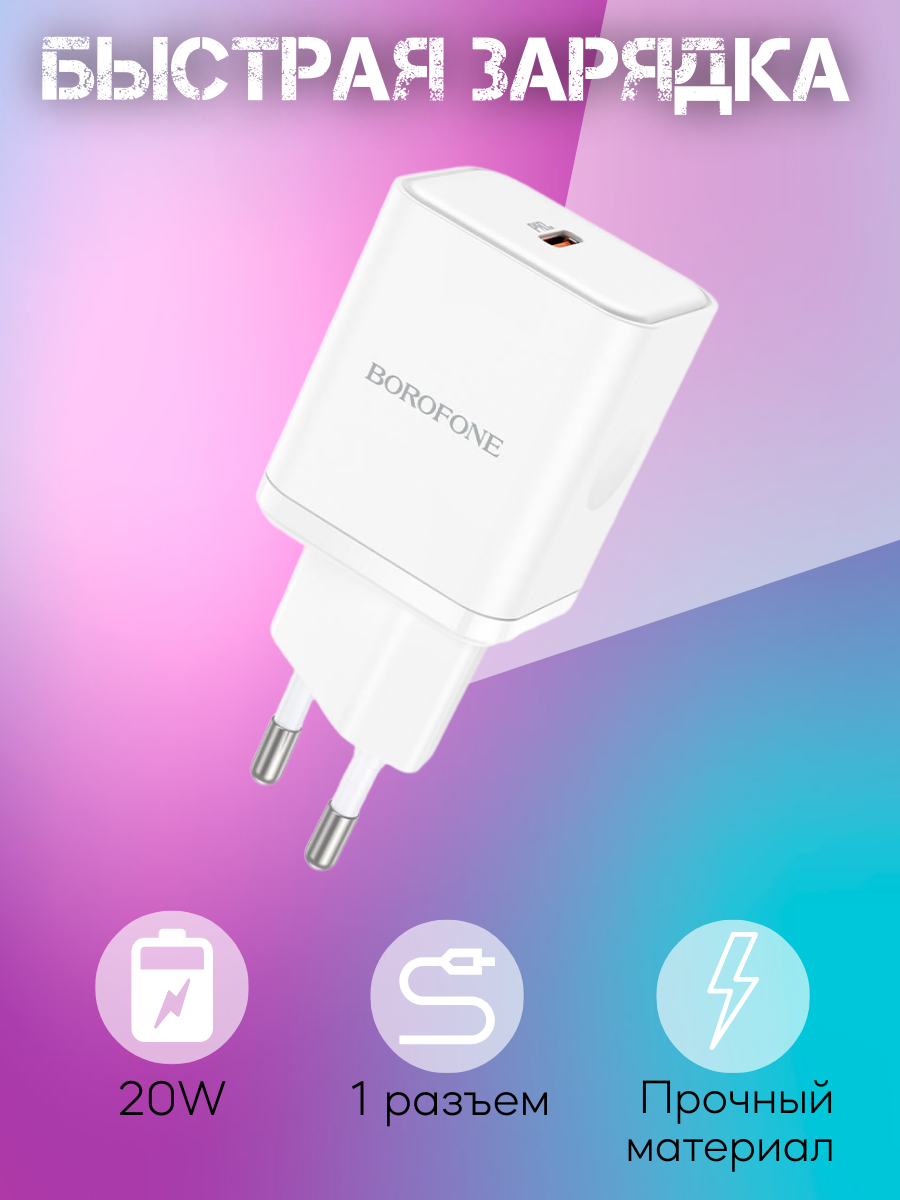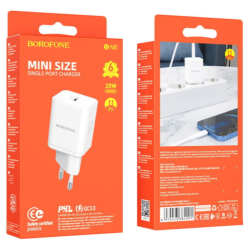 BOROFONE BN6 Field сетевое зарядное устройство с выходом USB-C 20W, вилка EU, поддержка протоколов быстрой зарядки.