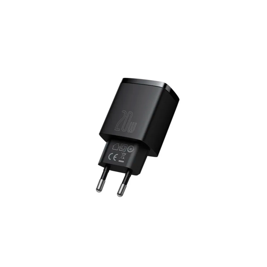 Baseus Compact Quick Charger 20W похоже на те зарядные, которые идут в комплекте со смартфоном. Размеры его составляют 82x40x28 мм, а вес всего 53 граммов. Только в нем не один выходной разъем, а целых два: USB и USB Type-C.