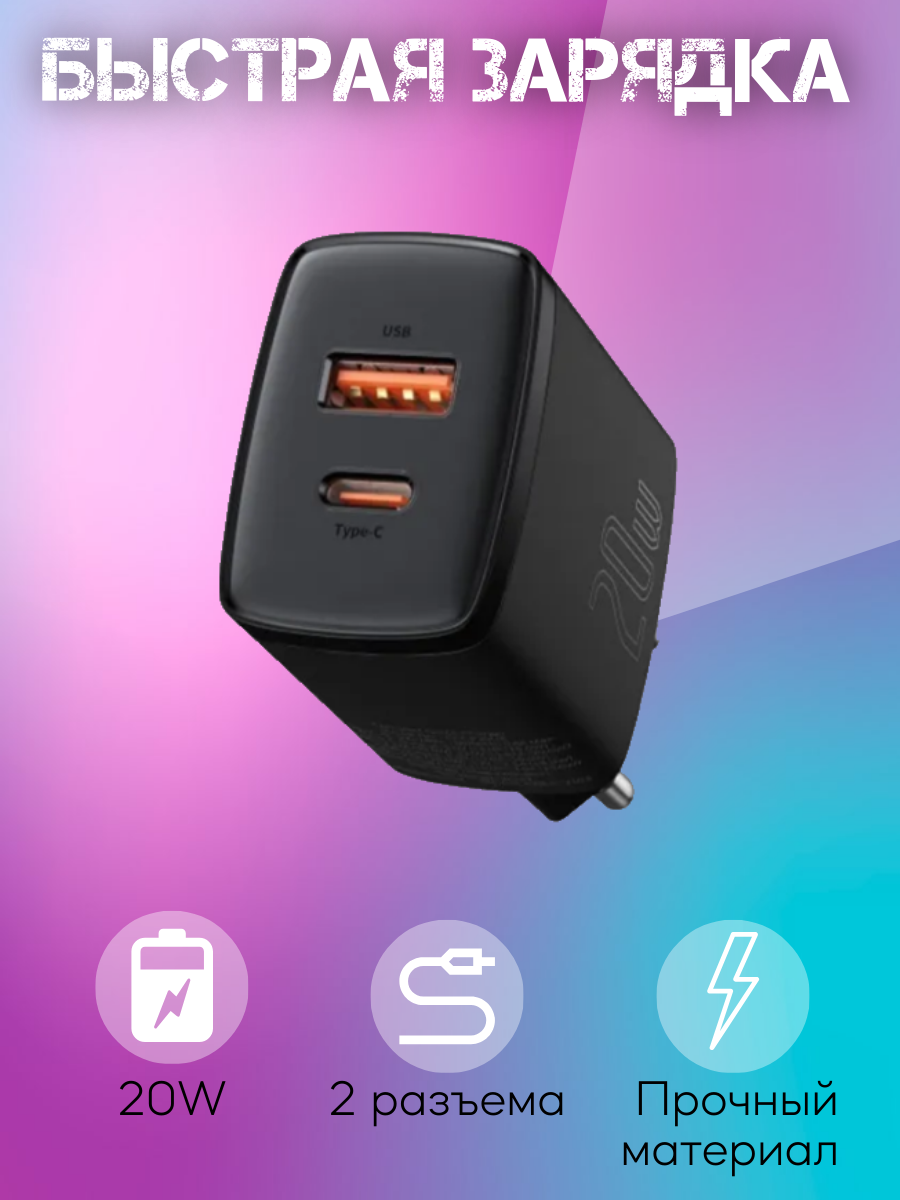 Быстрая зарядка и возможность одновременного питания 2 устройств? Это возможно с Baseus! Зарядное устройство CCXJ-B01 оснащено 2 портами - USB-C и USB-A, и благодаря используемой технологии оно обеспечивает безопасность использования.