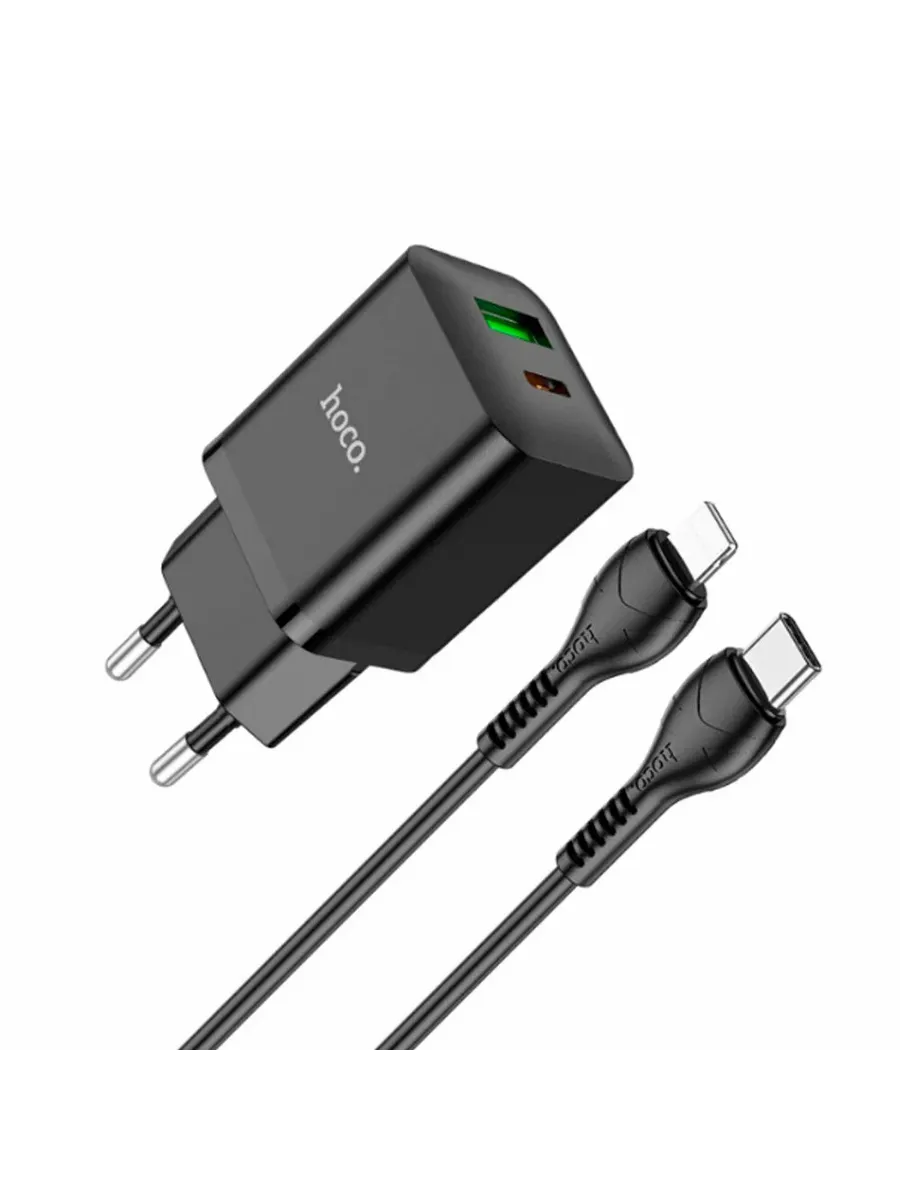 Сетевое зарядное устройство Hoco N28 + кабель Type-C на Lightning, черный