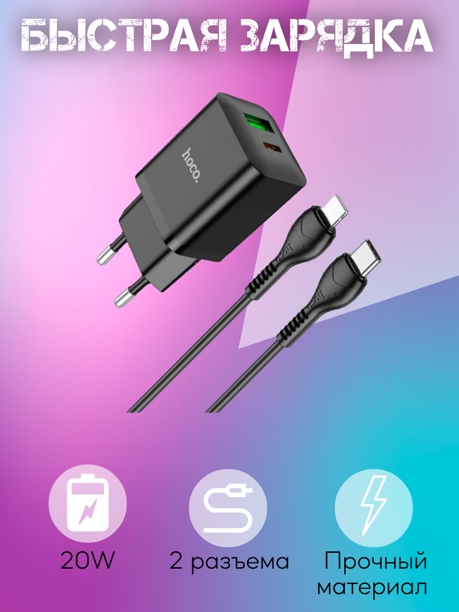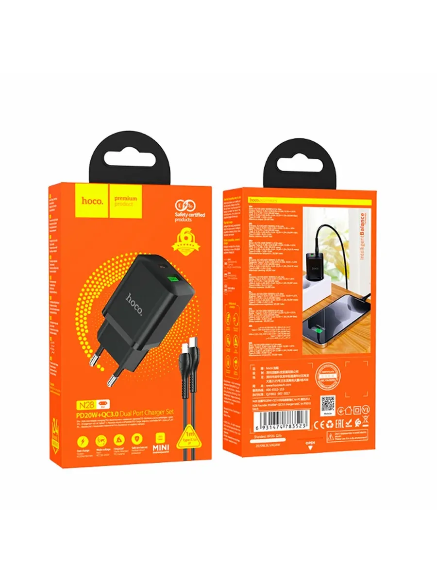 Hoco N28 - это сетевое зарядное устройство с двумя портами USB-A и USB-С и кабелем Type-C - Lightning, которое позволяет заряжать два устройства одновременно. Оно имеет мощность 20 Вт и поддерживает быструю зарядку, что позволяет зарядить смартфон или планшет за короткое время.