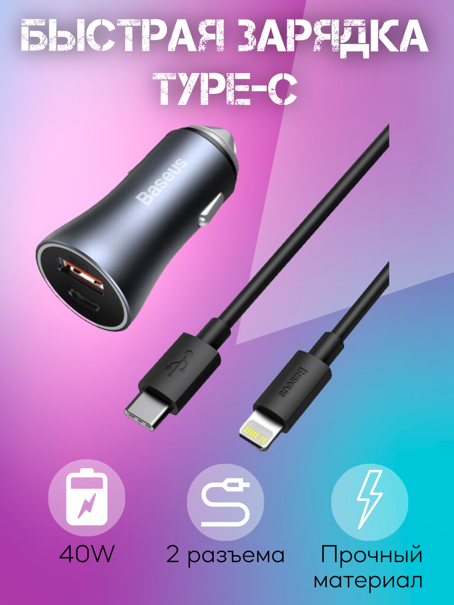 В комплекте с зарядным устройством идет кабель Type-C to Lightning, который обеспечивает быструю и безопасную зарядку вашего устройства.