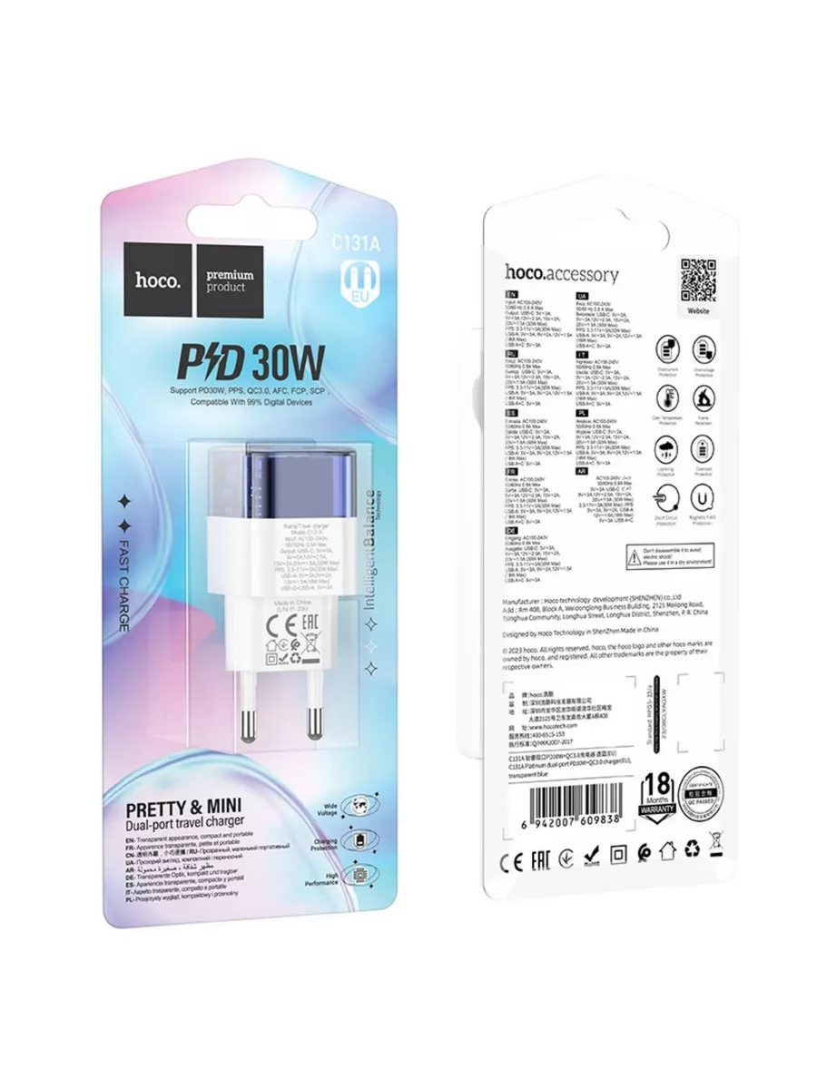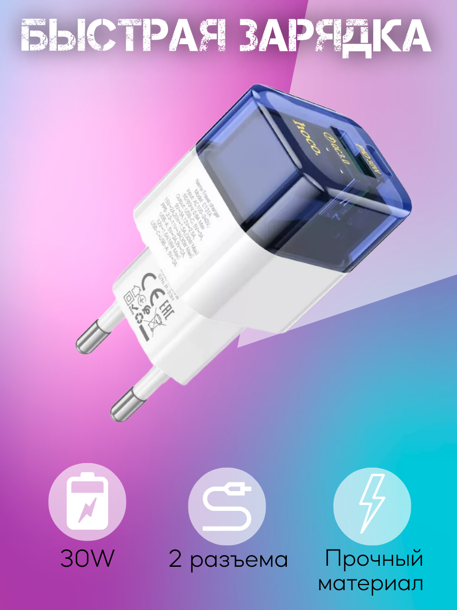 Hoco C131A – сетевое зарядное устройство, выполненное из высококачественных огнеупорных материалов, что делает его прочным и долговечным.
