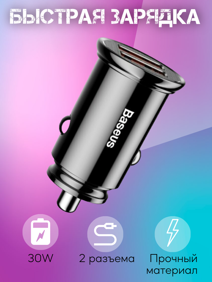 Baseus Dual QC – миниатюрное автомобильное зарядное устройство с двумя выходными USB портами, работающими одновременно. С ним Вам больше не придется решать: поставить ли сначала телефон на зарядку или сразу подключить видеорегистратор.