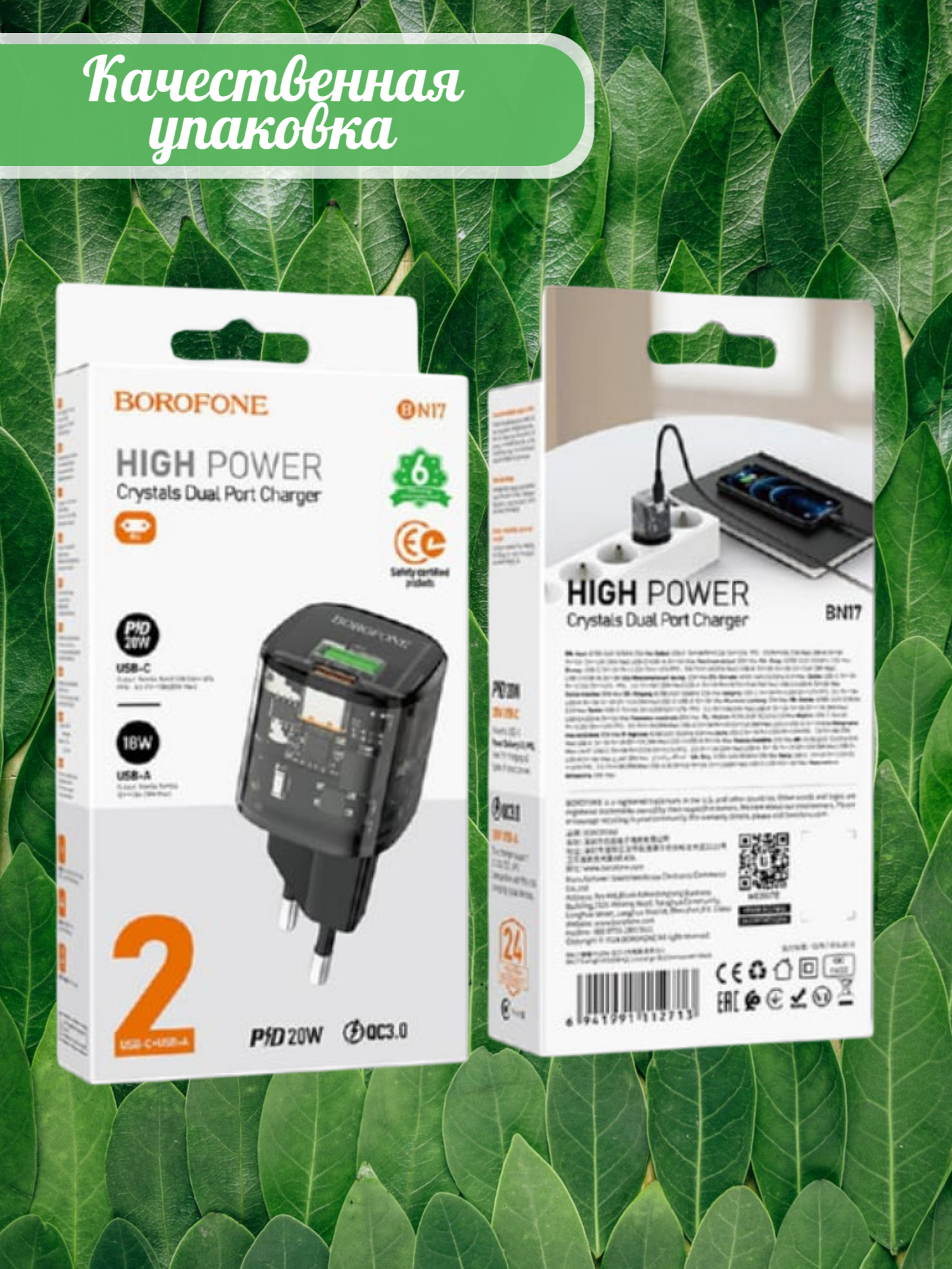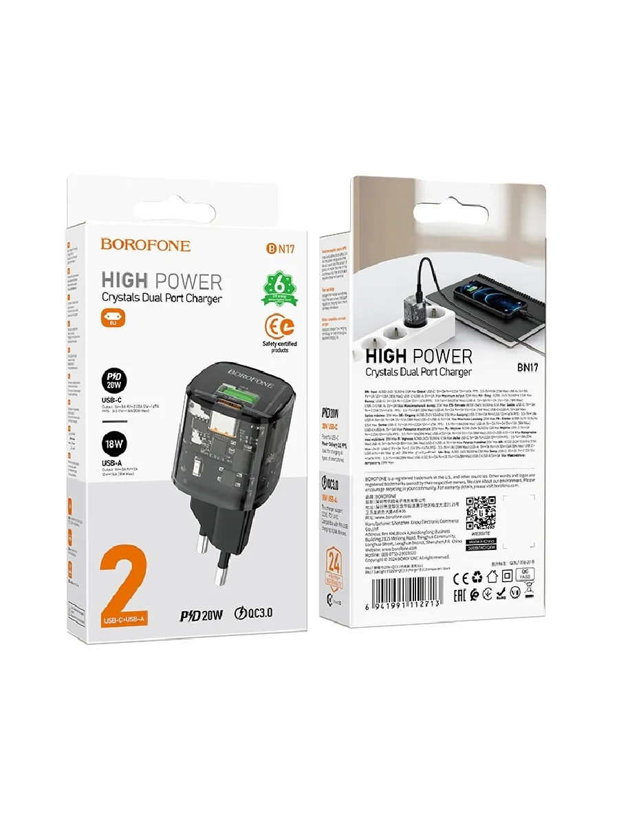 Borofone BN17 - современное сетевое зарядное устройство с поддержкой быстрой зарядки, разработанное для эффективной подзарядки ваших устройств.