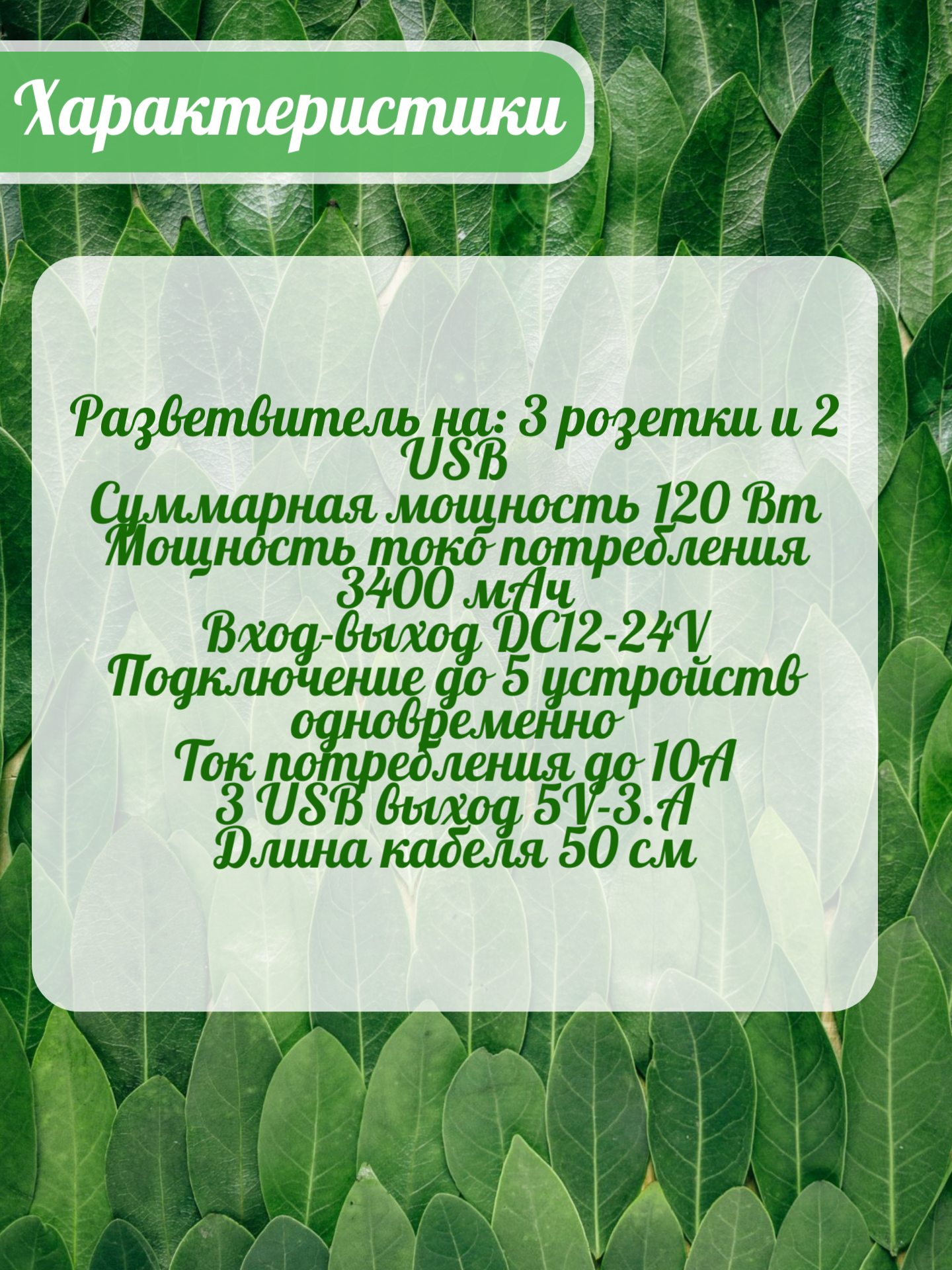 | 3 USB выход | 5V-3.A |