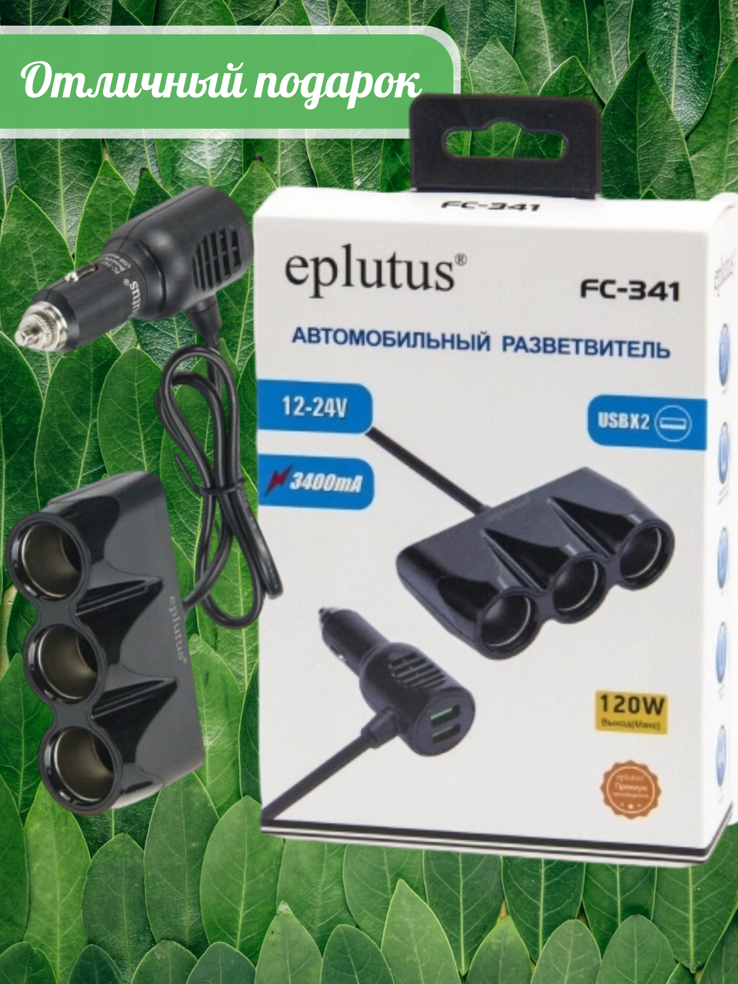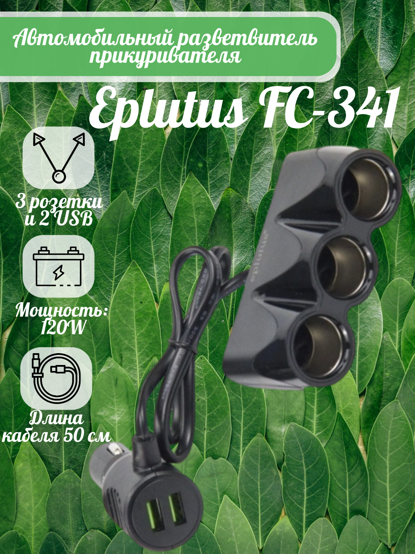 | Разветвитель на: | 3 розетки и 2 USB |